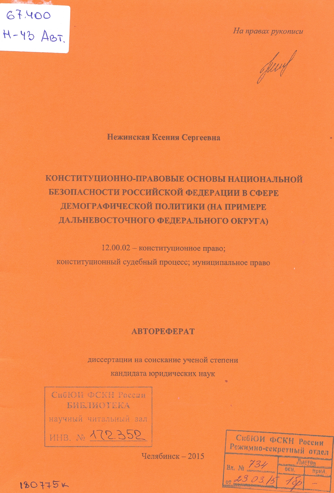 Конституционно-правовые основы национальной безопасности Российской Федерации в сфере демографиче...: автореферат