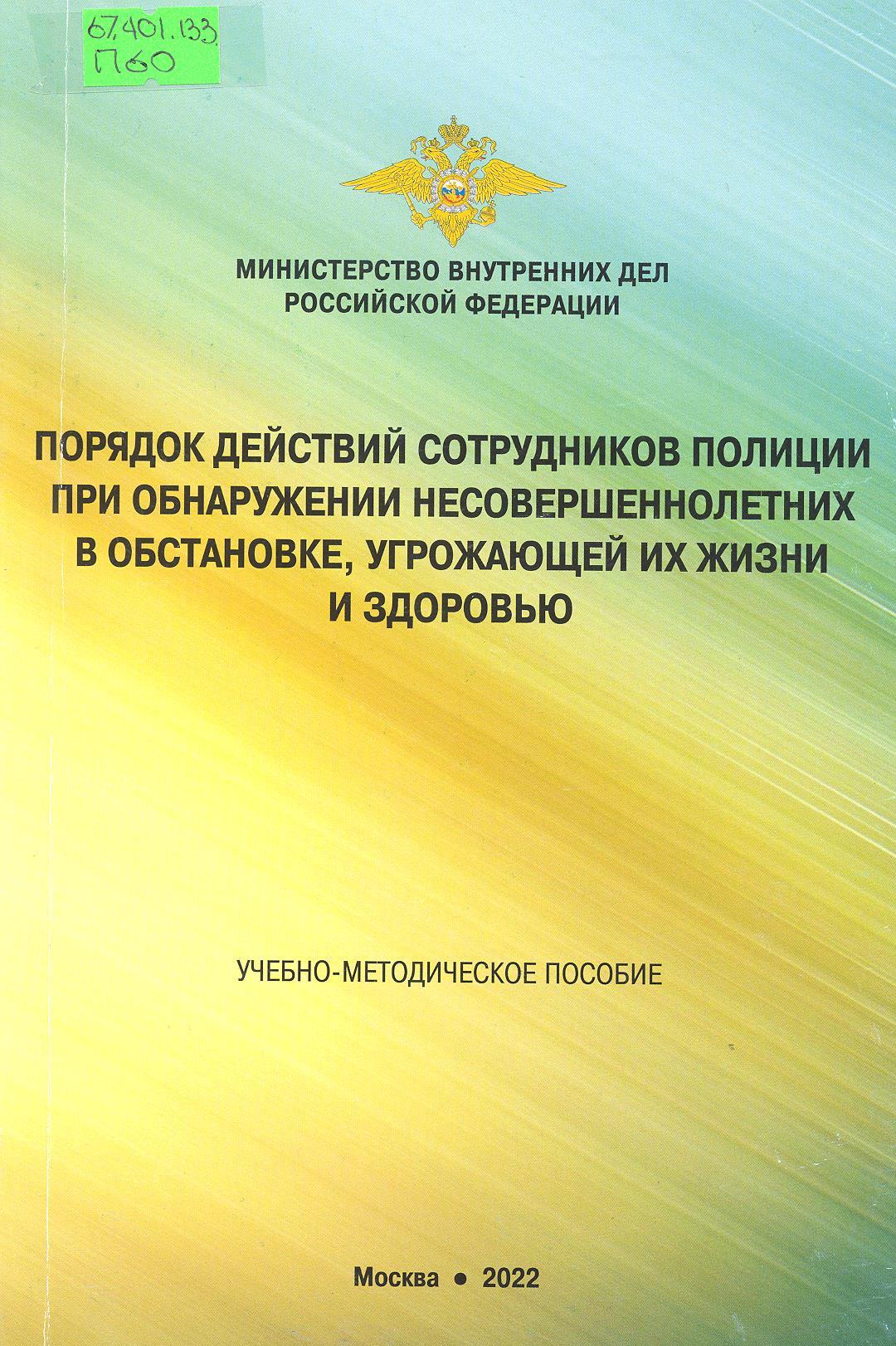 Порядок действий сотрудников полиции при обнаружении несовершеннолетних в обстановке, угрожающей ...: учебно-методическое пособие
