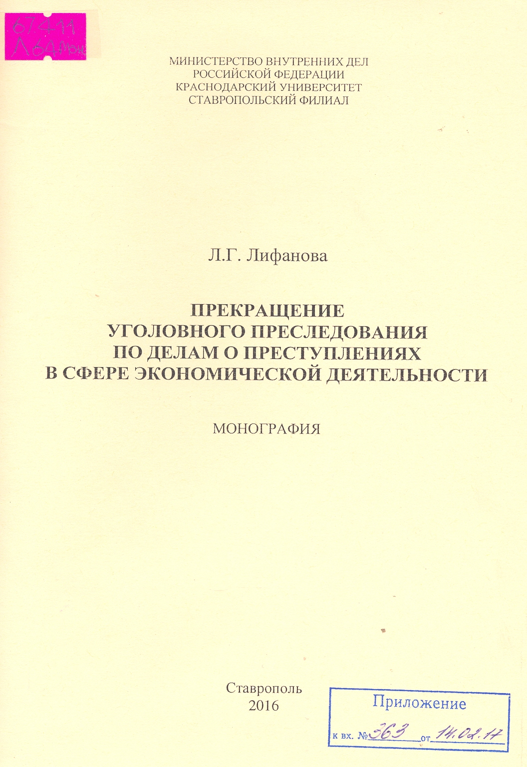 Прекращение уголовного преследования по делам о преступлениях в сфере экономической деятельности: монография