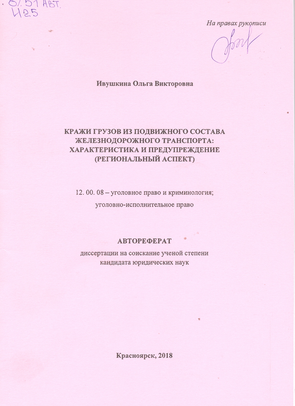 Предупреждение краж личного имущества на железнодорожном транспорте (по материалам Московской жел...: автореферат : 12.00.08