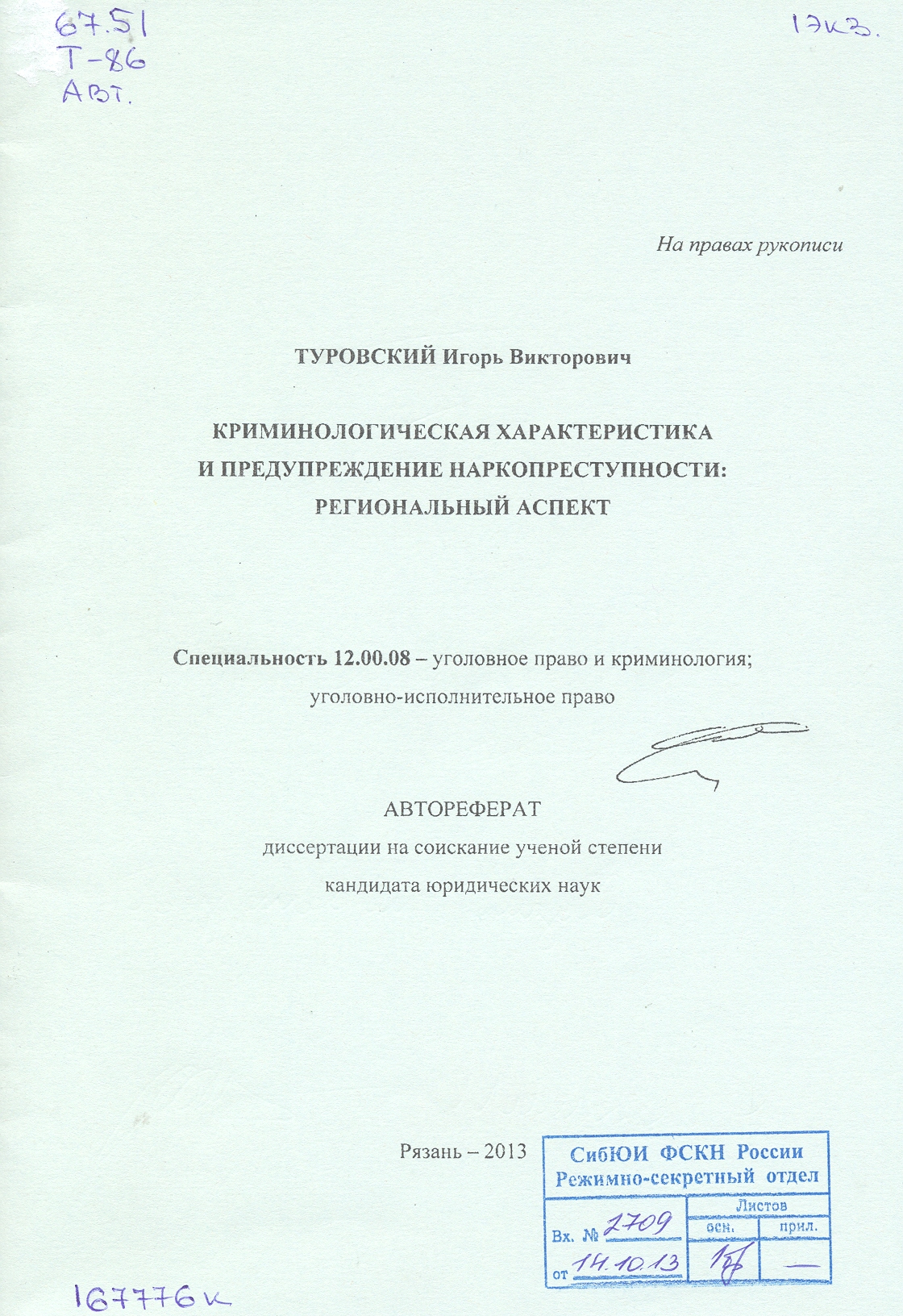 Криминологическая характеристика и предупреждение наркопреступности: региональный аспект: автореферат: 12.00.08.