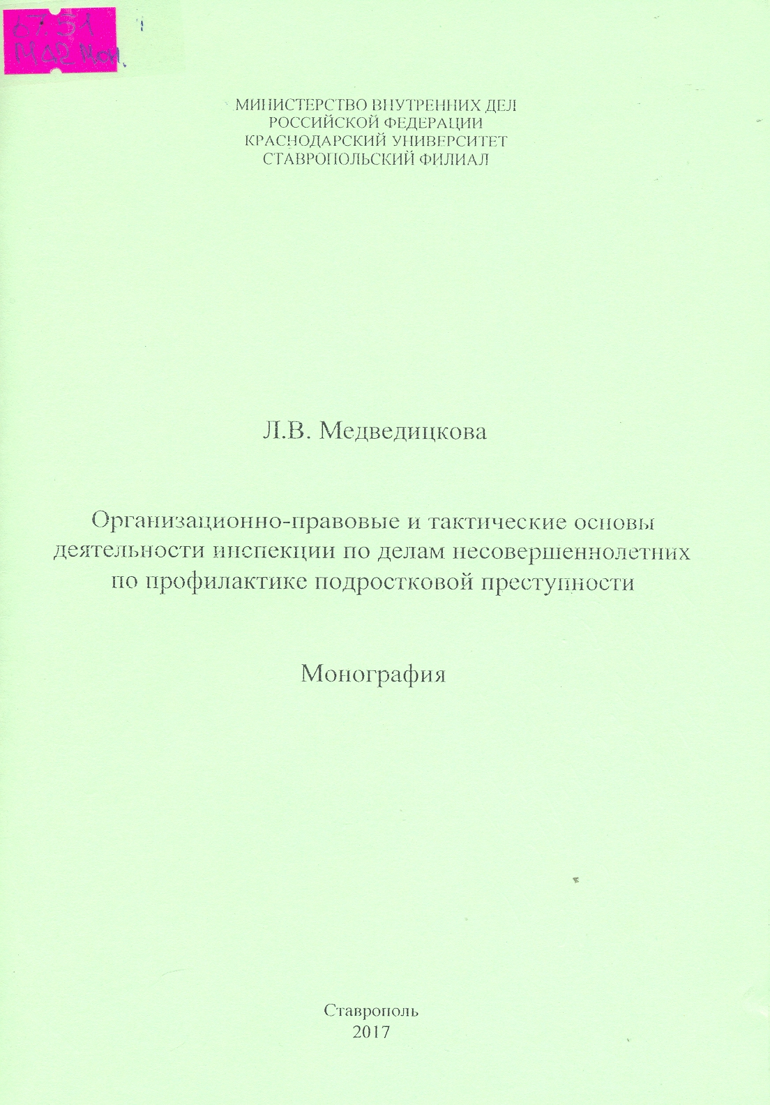 Организационно-правовые и тактические основы деятельности инспекции по делам несовершеннолетних п...: монография
