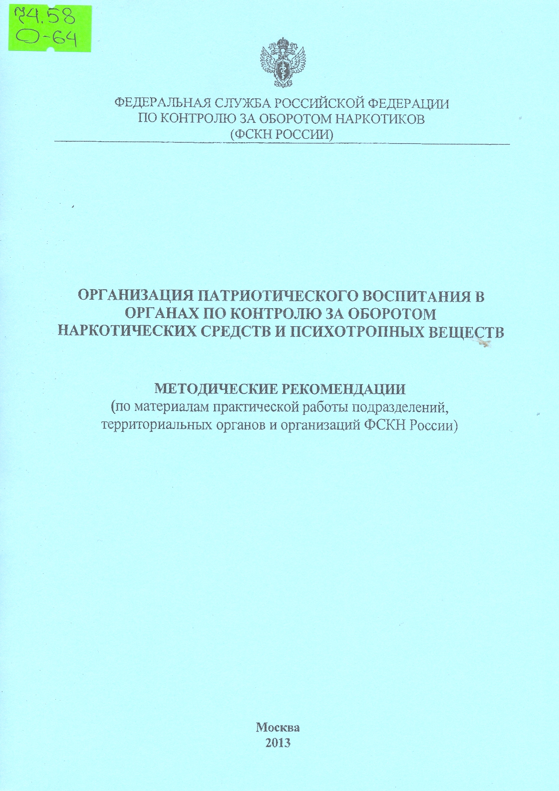 Северо-Западный институт повышения квалификации ФСКН России (СЗИПК ФСКН России), 2013 г.