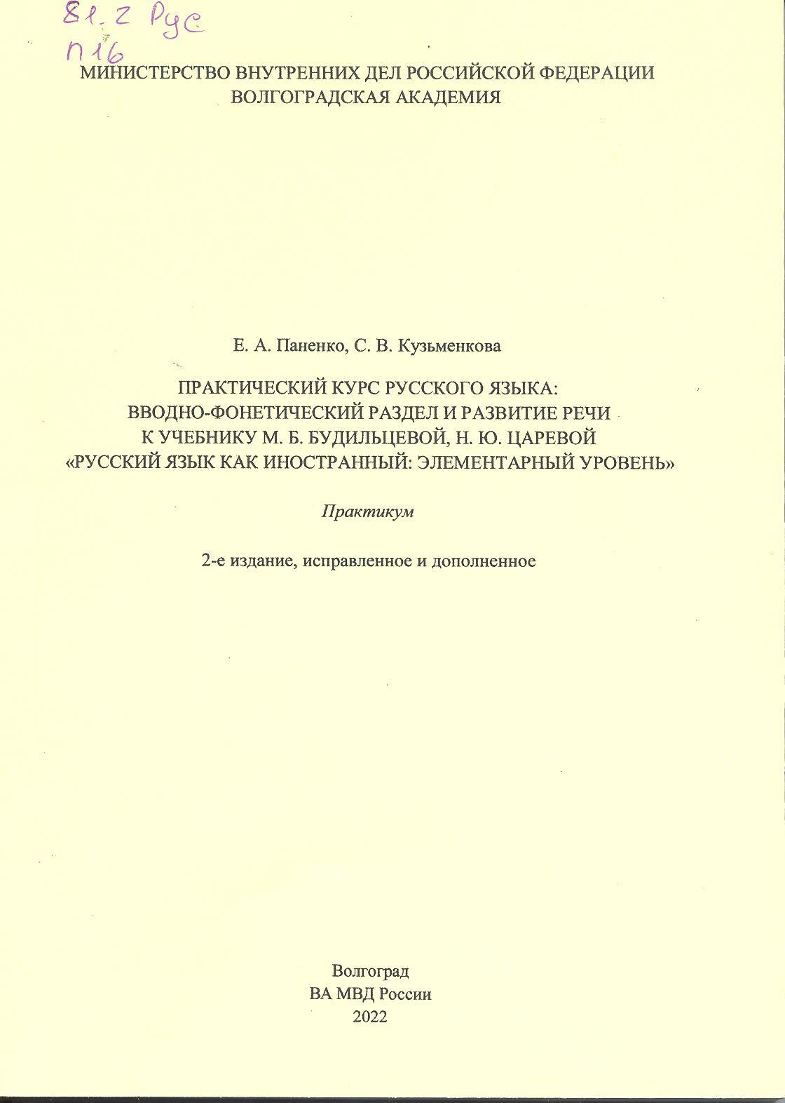 Практический курс русского языка: вводно-фонетический раздел и развитие речи к учебнику М. Б. Буд...: практикум