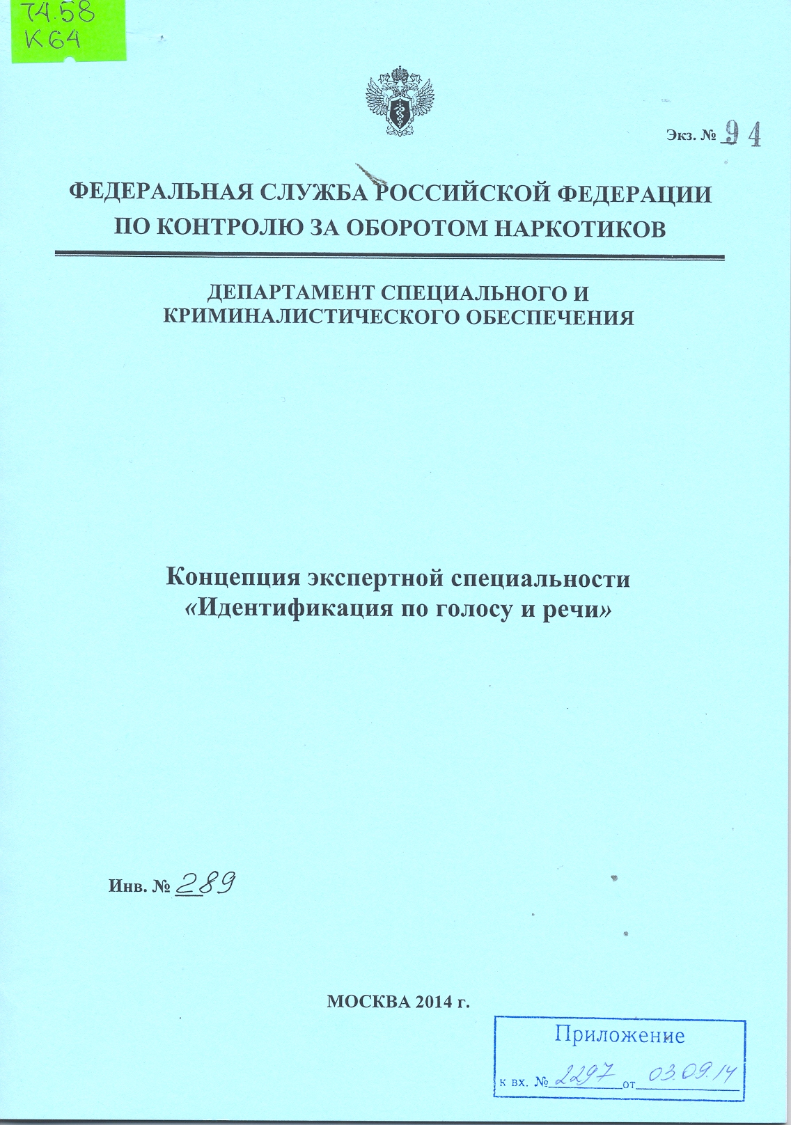 Экспертно-криминалистическое управление Департамента ФСКН России (ЭКУ 9 Департамента ФСКН России), 2013 г.