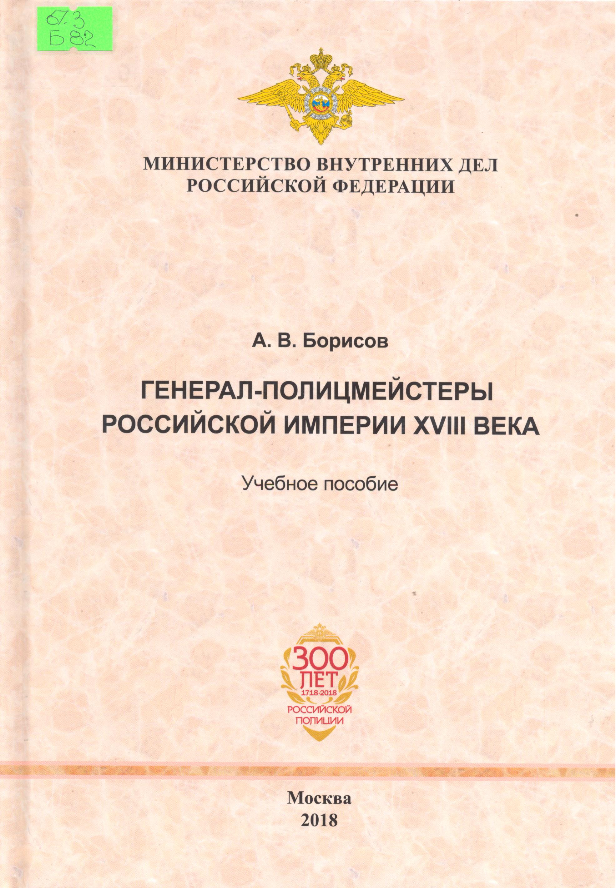 Генерал-полицмейстеры Российской империи XVIII века: учебное пособие