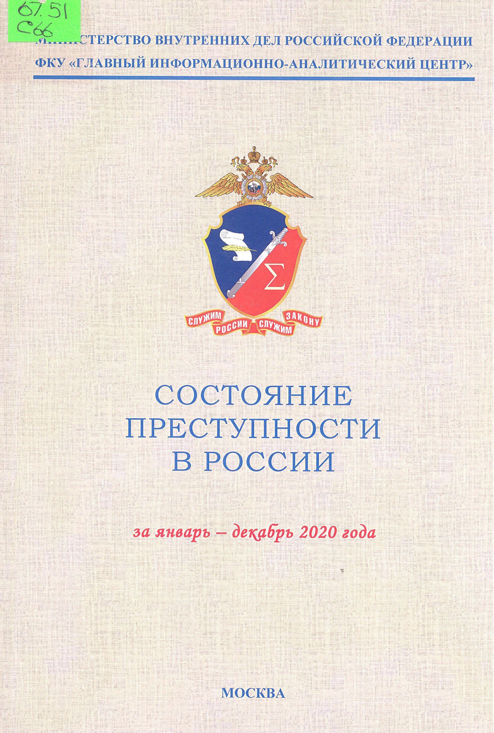 Состояние преступности в России за январь-декабрь 2020 года