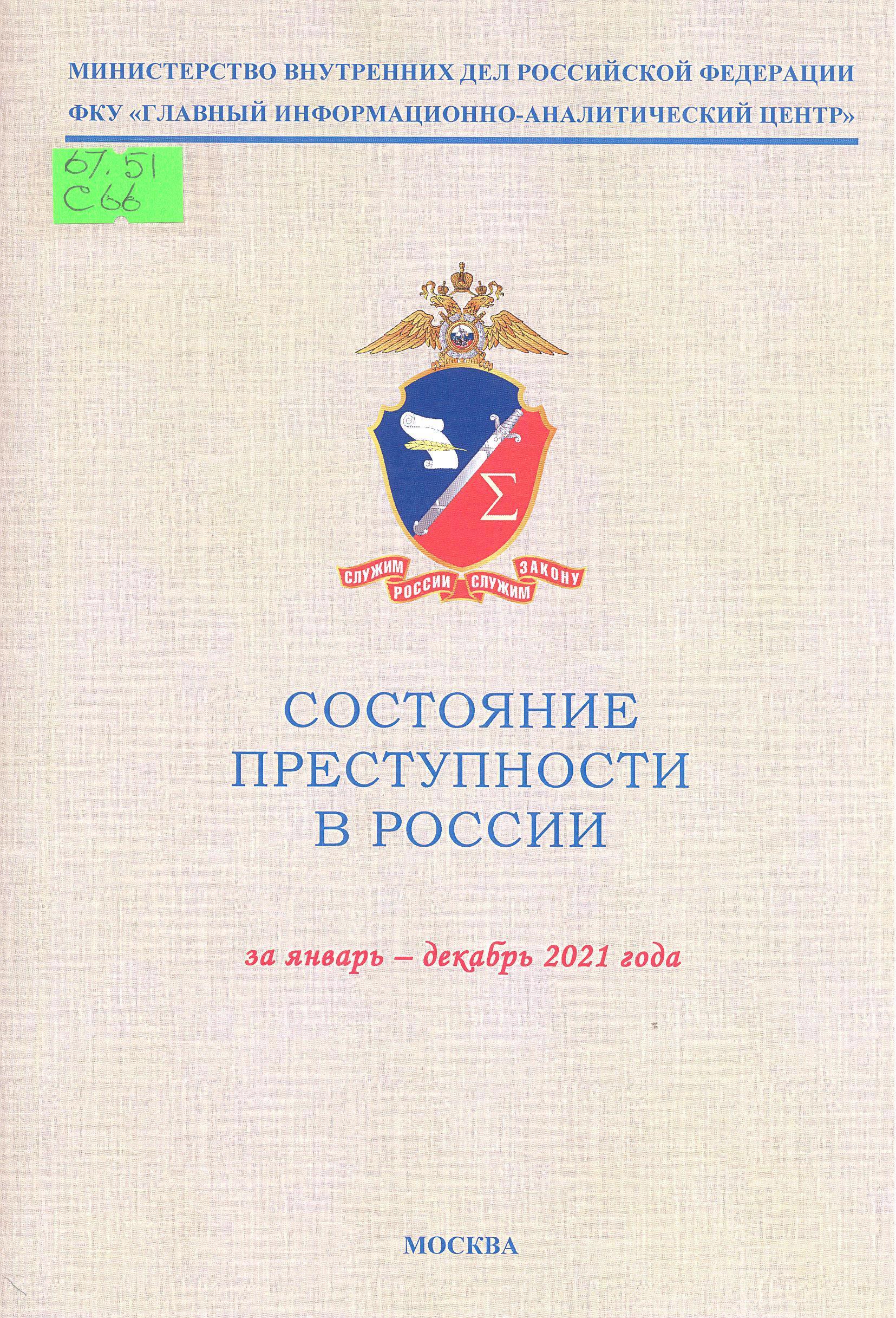 Состояние преступности в России за январь-декабрь 2021 года