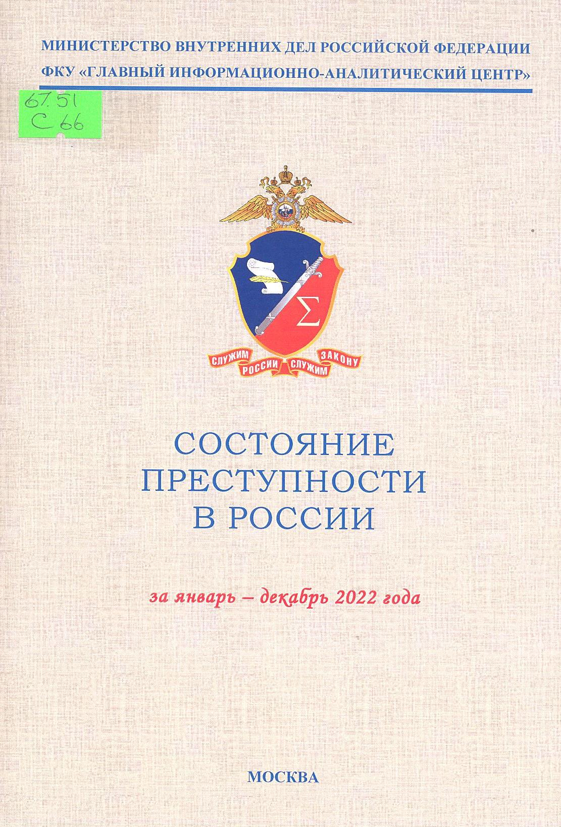 Состояние преступности в России за январь-декабрь 2022 года