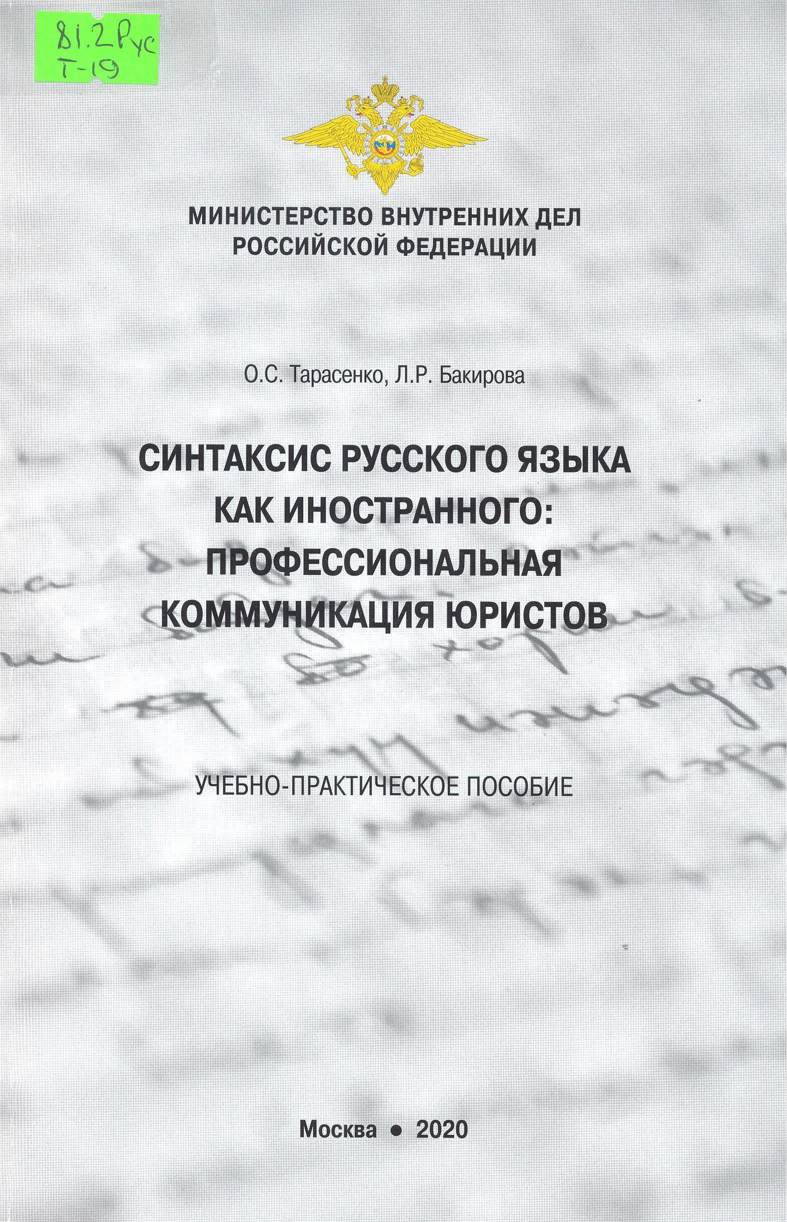 Синтаксис русского языка как иностранного: профессиональная коммуникация юристов: учебно-практическое пособие