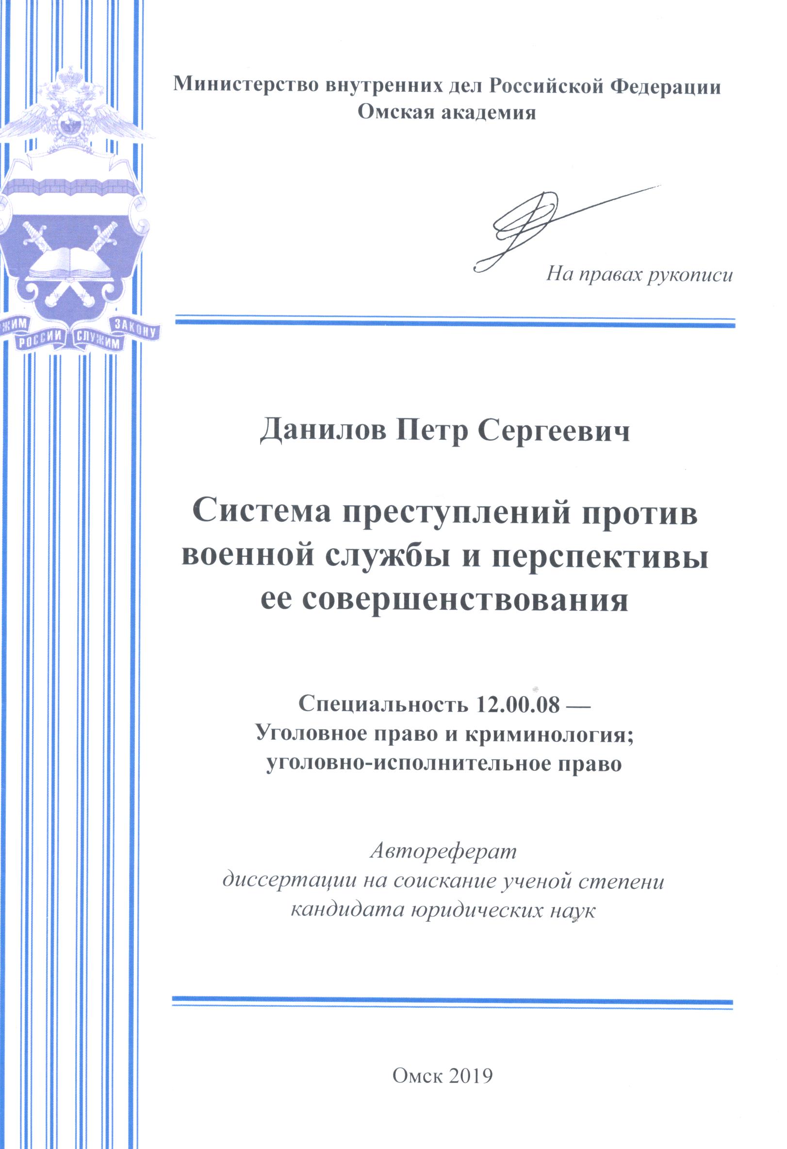 Система преступлений против военной службы и перспективы ее совершенствования: автореферат: 12.00.08