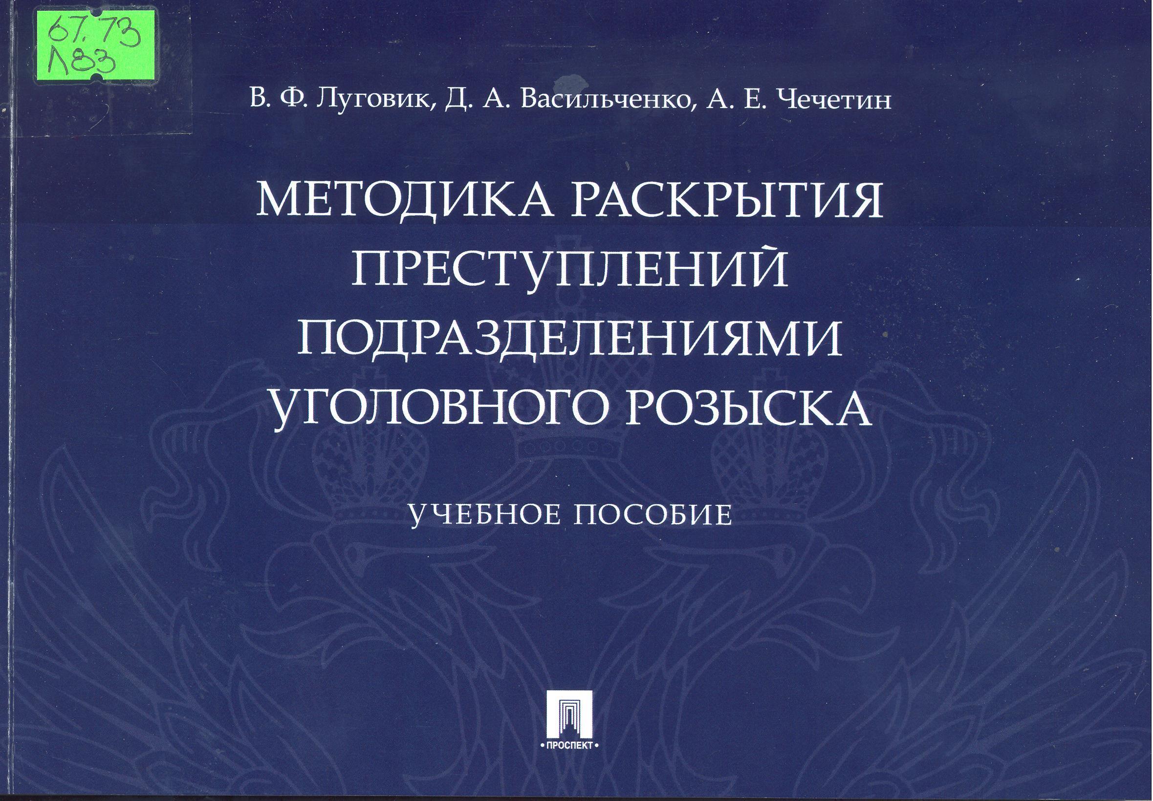 Методика раскрытия преступлений подразделениями уголовного розыска: учебное пособие