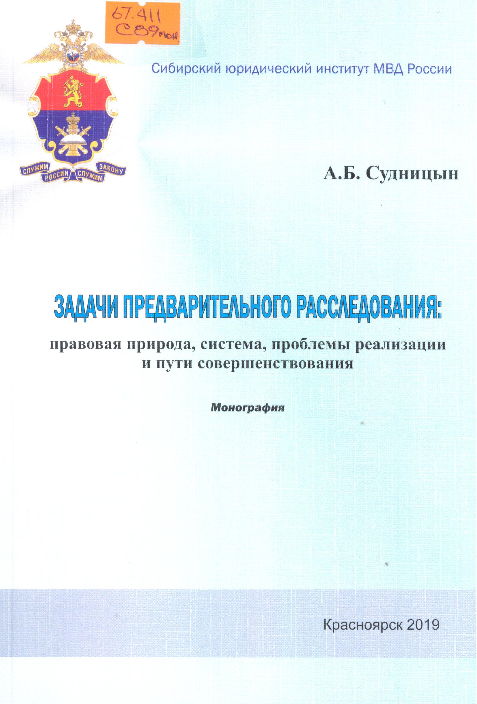 Задачи предварительного расследования: правовая природа, система, проблемы реализации и пути сове...: монография