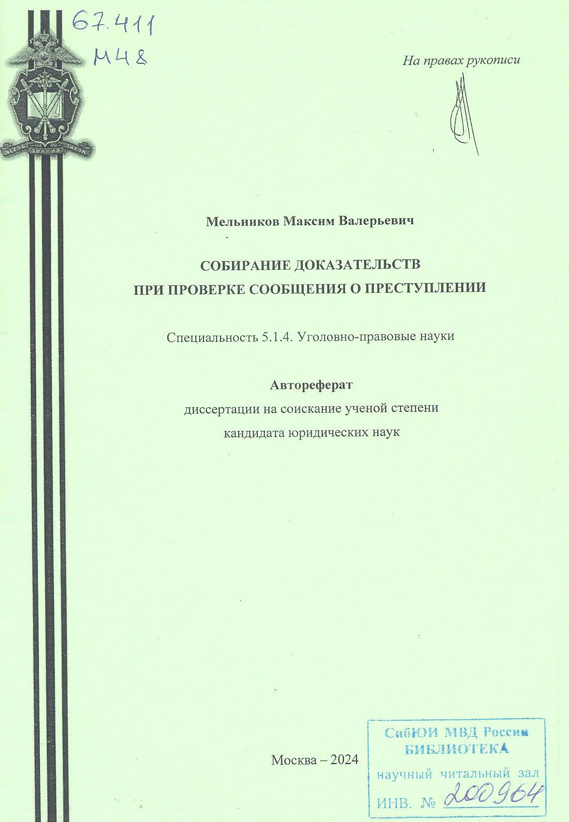 Способы собирания и закрепления доказательств на этапе доследственной проверки (на примере престу...: выпускная квалификационная работа