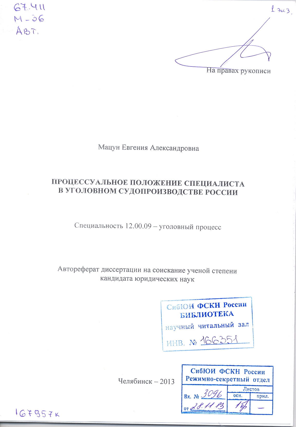 Процессуальное положение специалиста в уголовном судопроизводстве России: автореферат: 12.00.09.