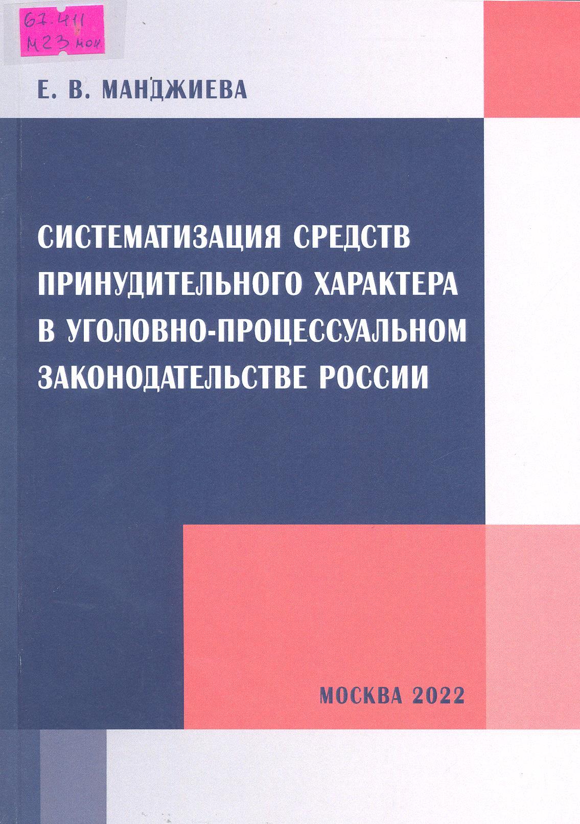 Систематизация средств принудительного характера в уголовно-процессуальном законодательстве России: монография