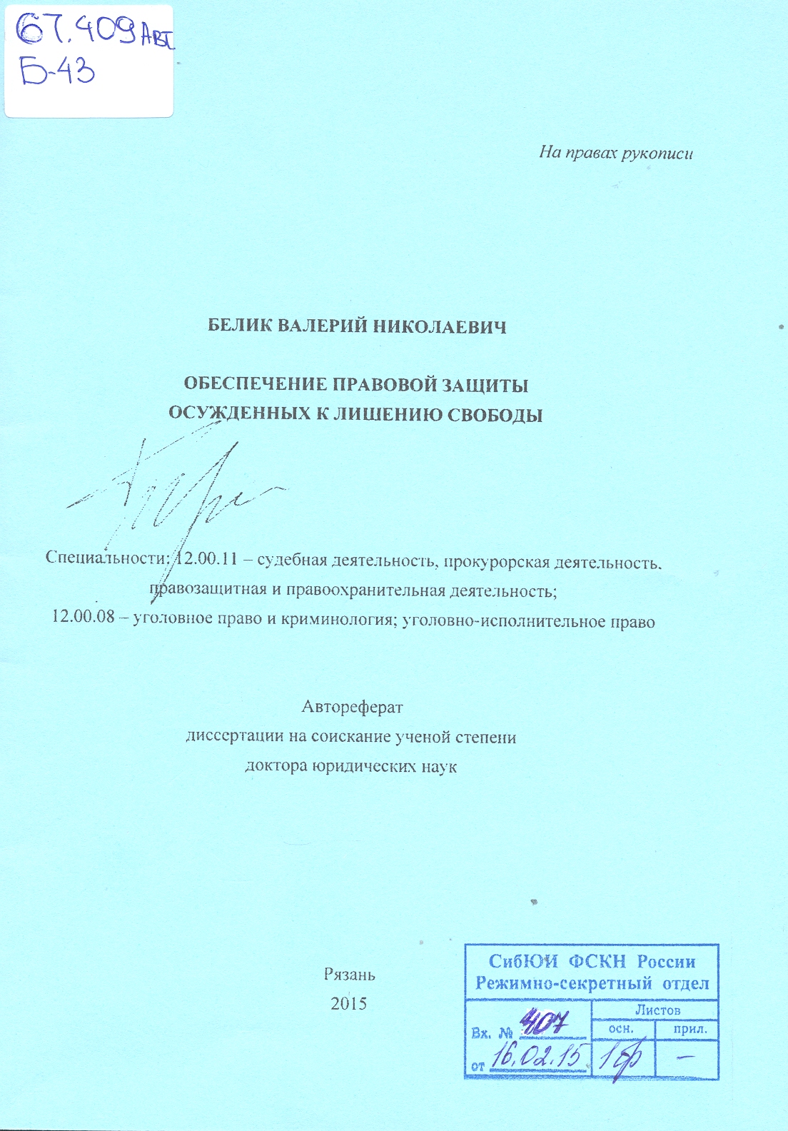 --> правовое обеспечение интересов личности