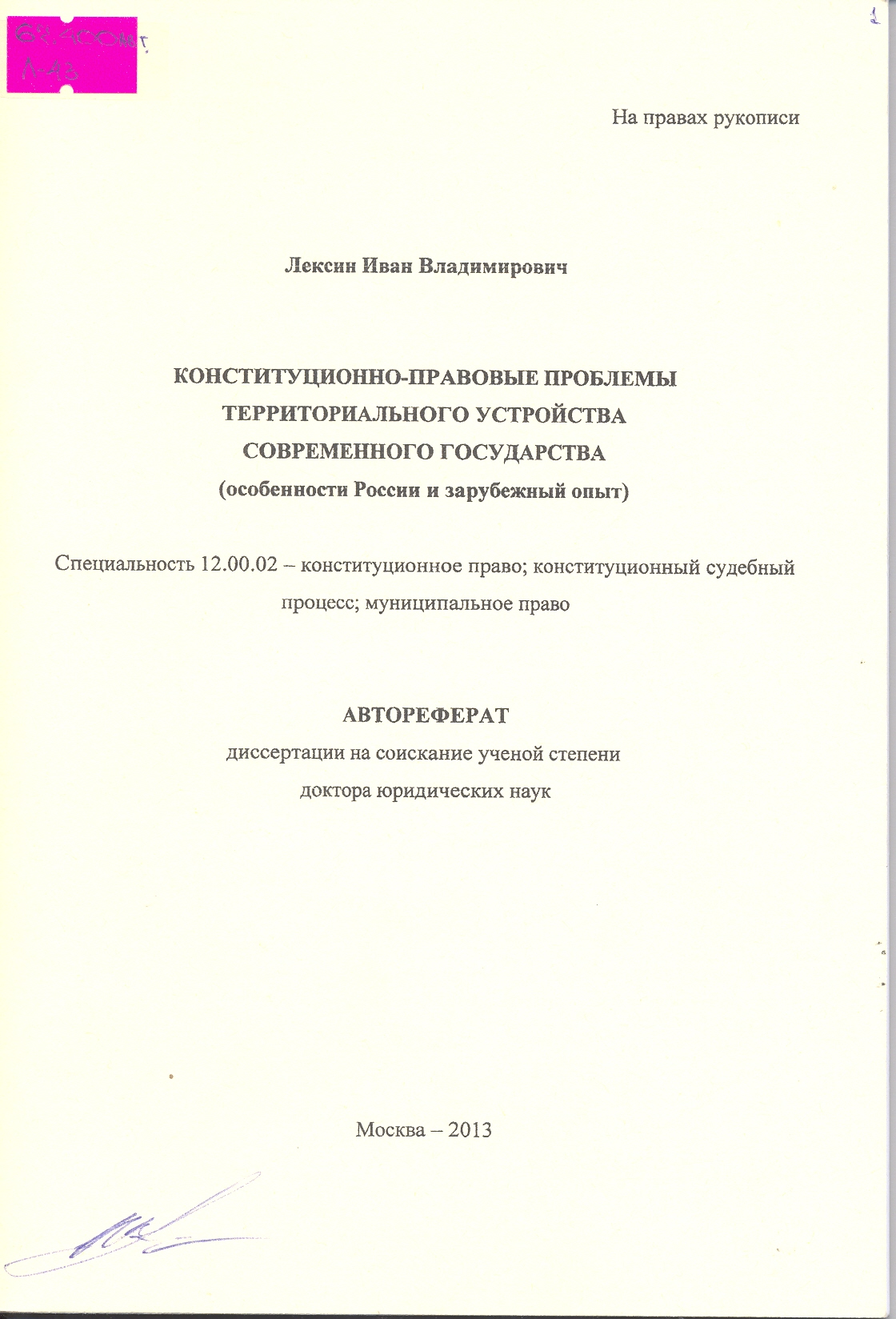 Конституционно-правовые проблемы институционализации права собственности в Российской Федерации: автореферат : 12.00.02