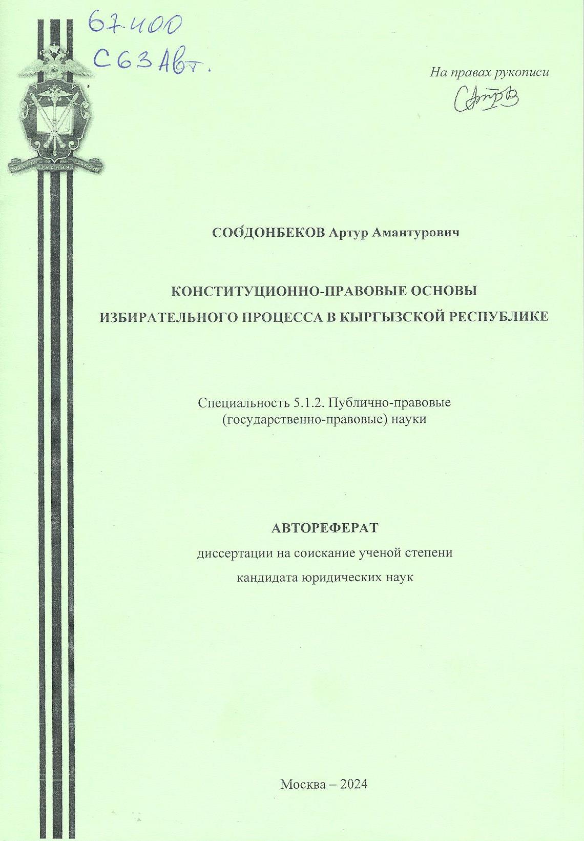 Конституционно-правовые основы избирательного процесса в Кыргызской Республике: автореферат диссертации на соискание ученой степени кандидата юридических наук : научная специальность 5.1.2