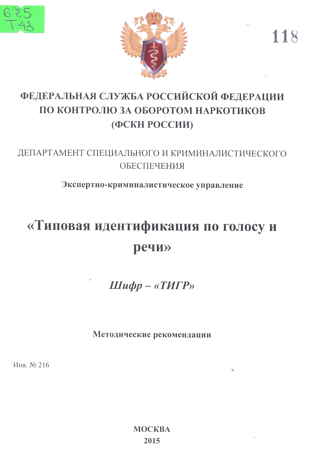 Типовая идентификация по голосу и речи (шифр - Тигр): методические рекомендации