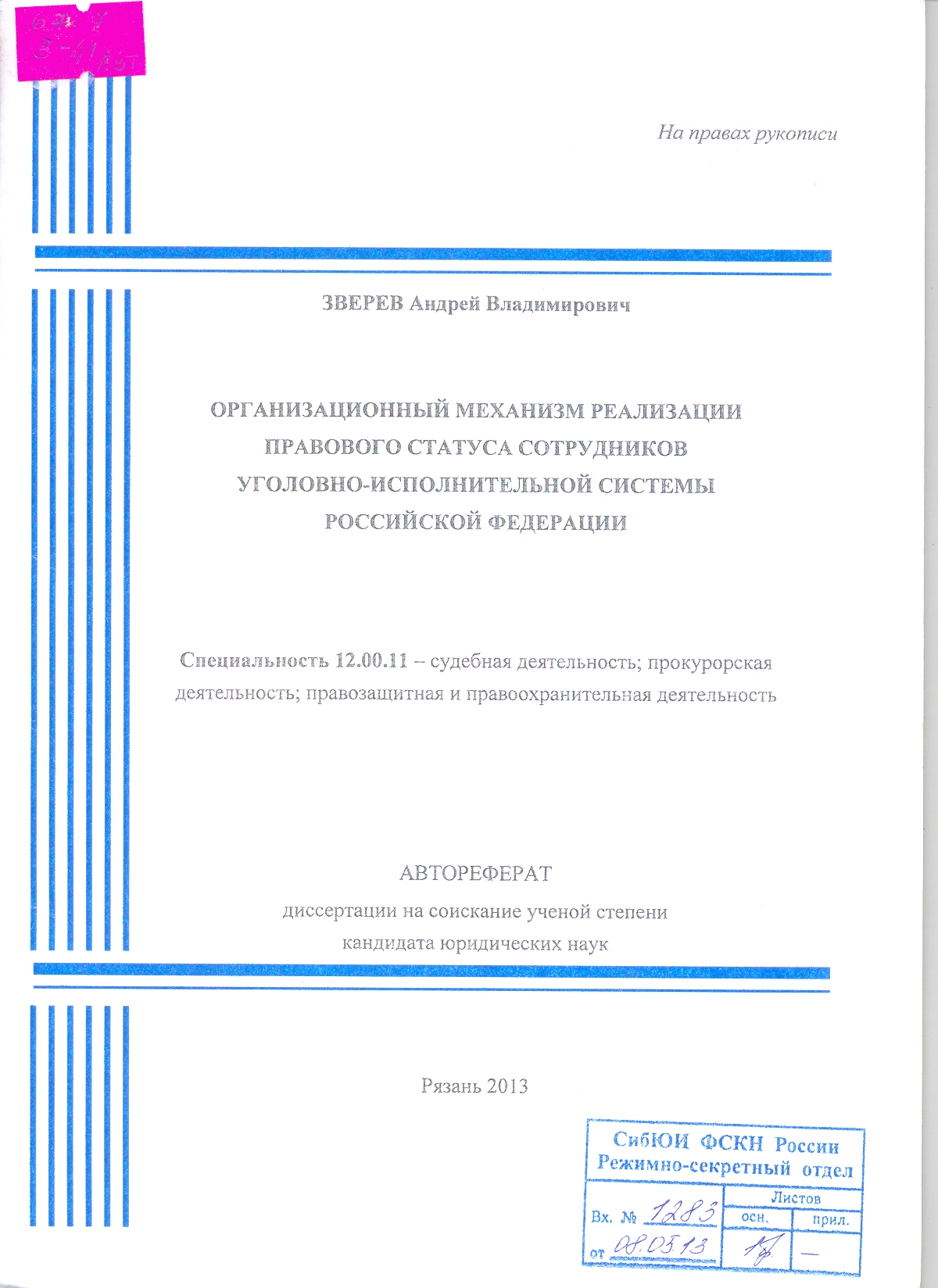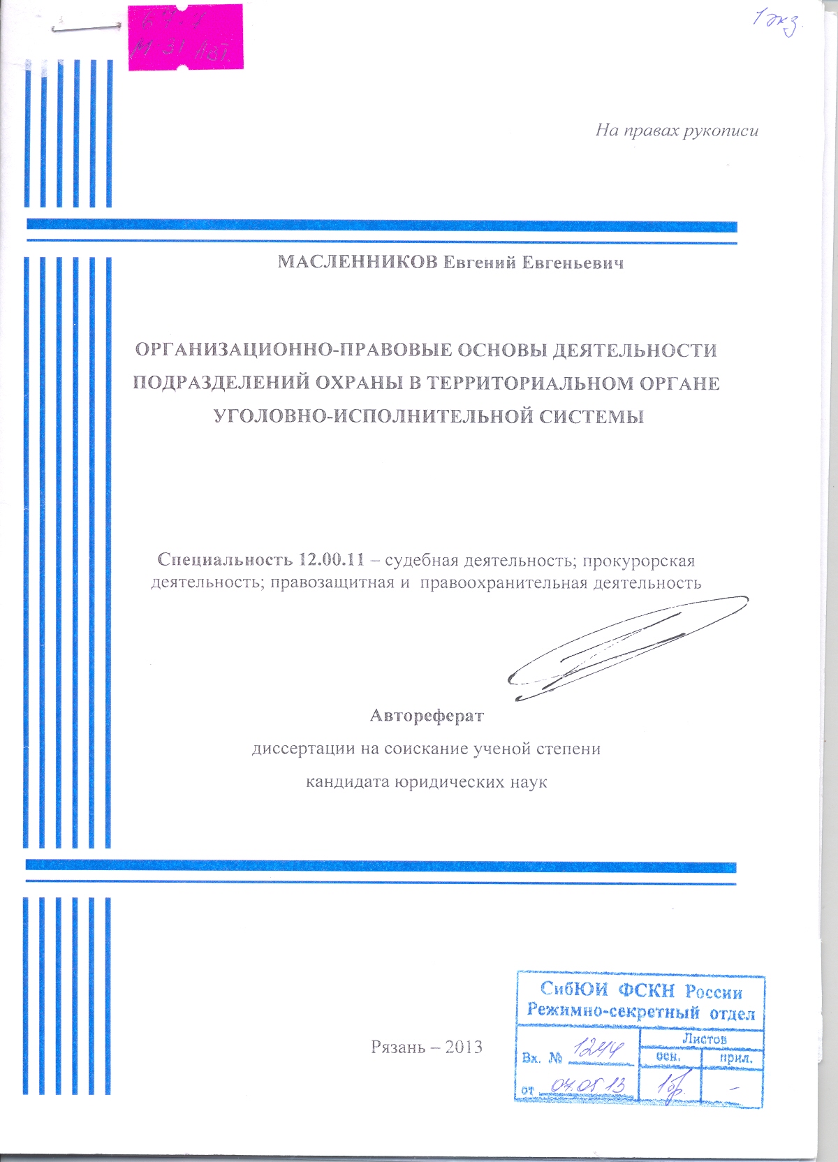 Правовые основы и организация инновационной деятельности в уголовно-исполнительной системе: автореферат: 12.00.11