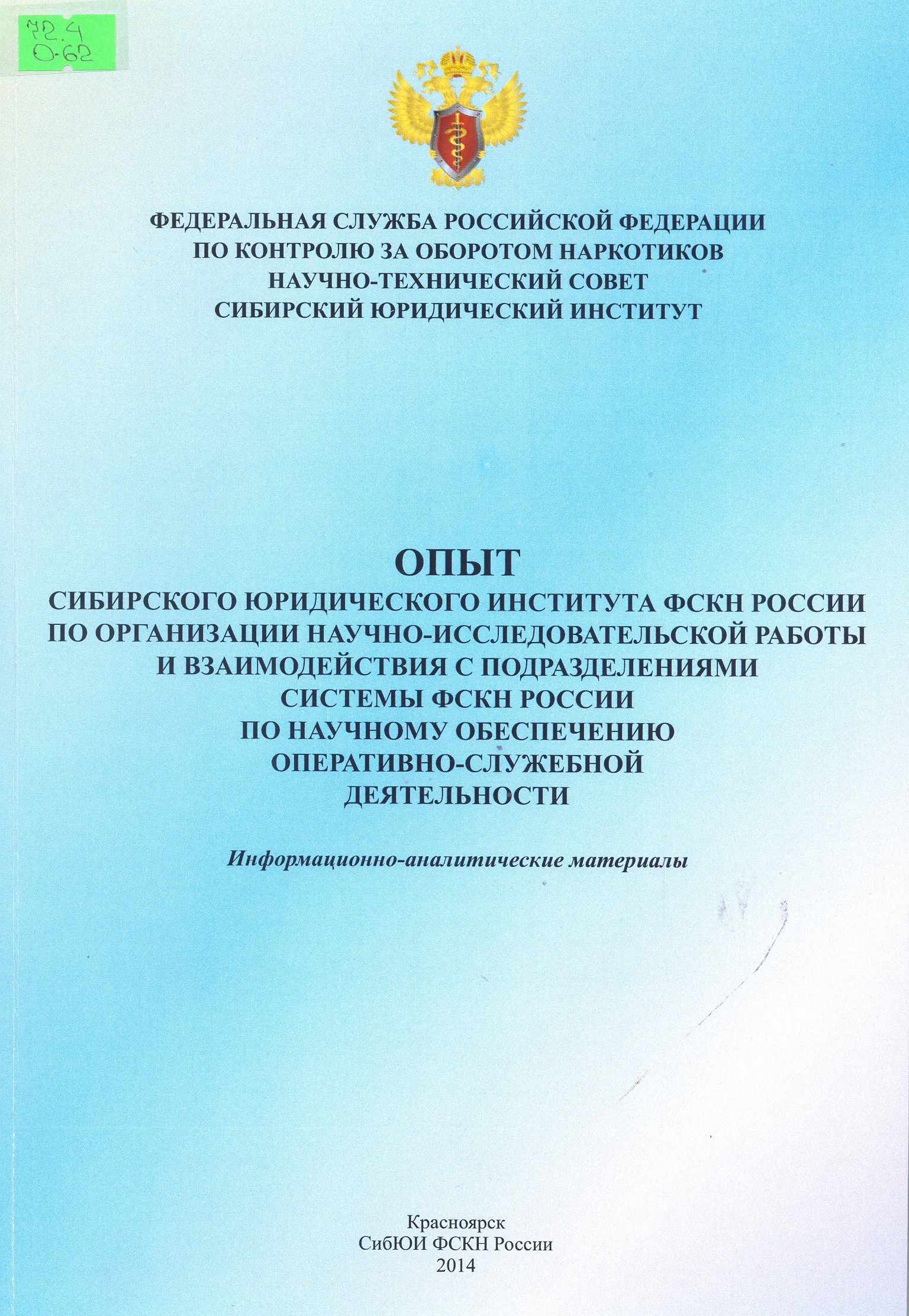 Опыт Сибирского юридического института ФСКН России по организации научно-исследовательской работы...: информационно-аналитические материалы