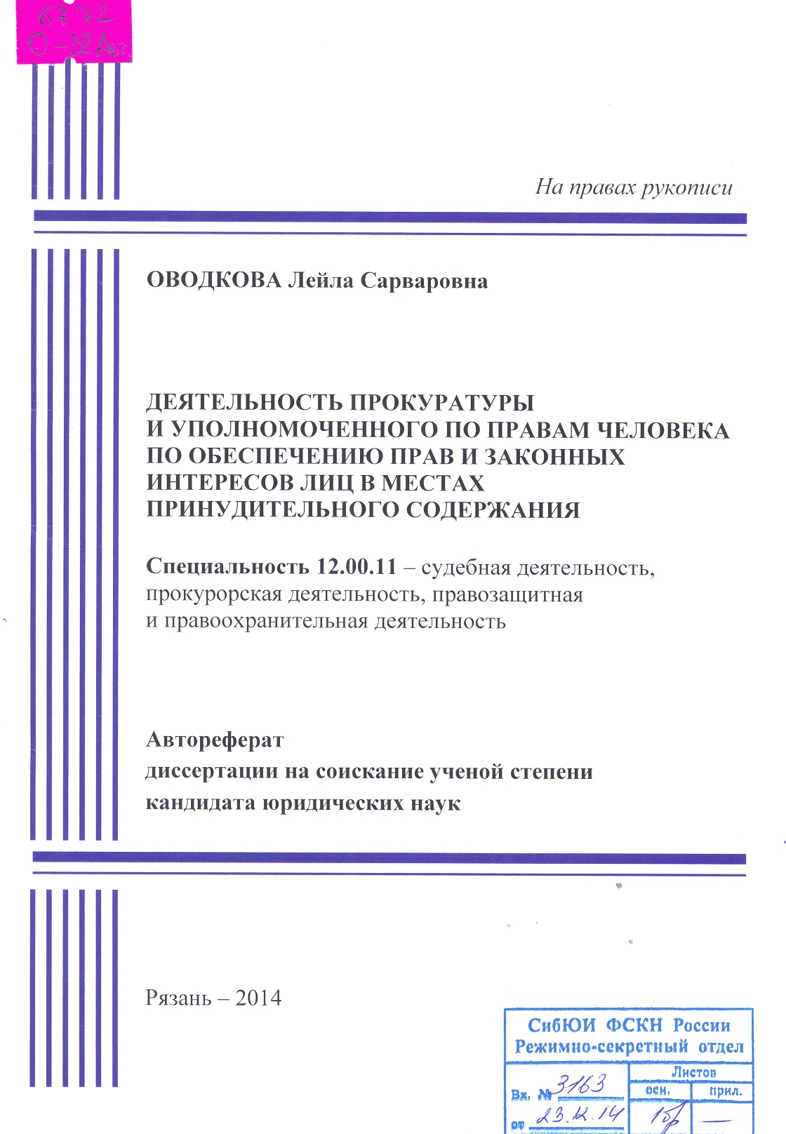 Надзор за судебной деятельностью судебных органов по рассмотрению уголовных дел: автореферат : 715