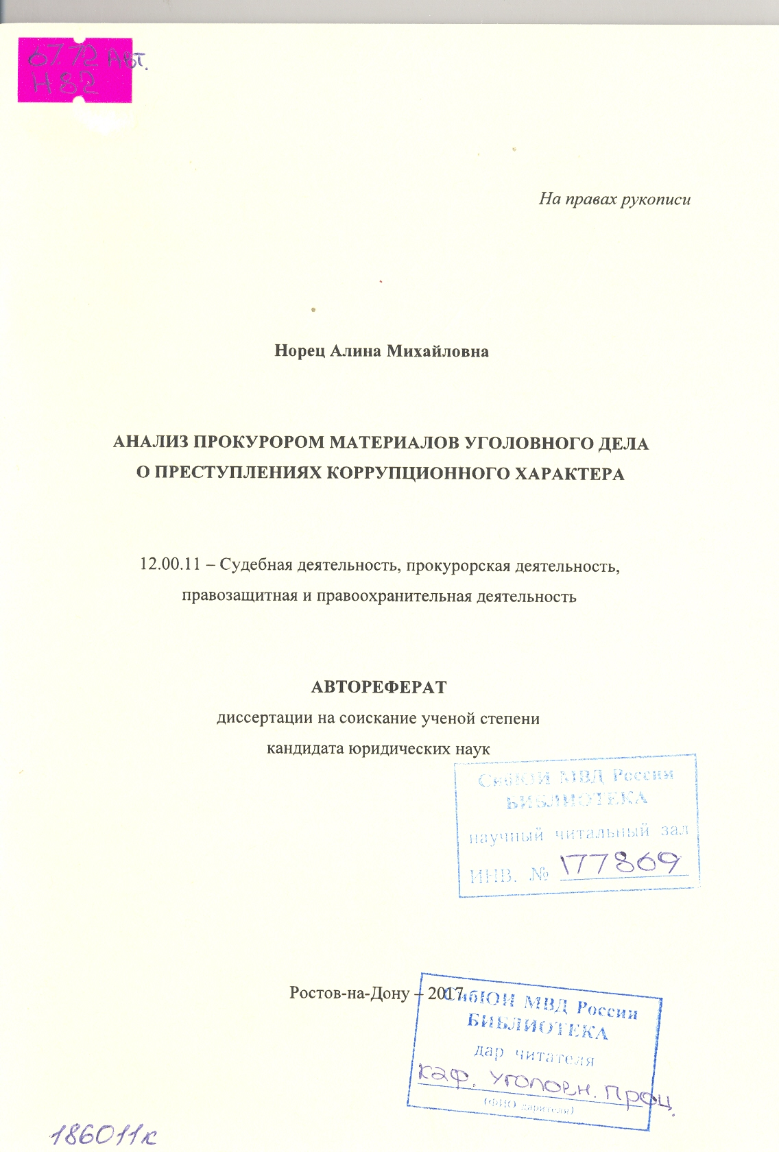 Анализ прокурором материалов уголовного дела о преступлениях коррупционного характера: автореферат : 12.00.11