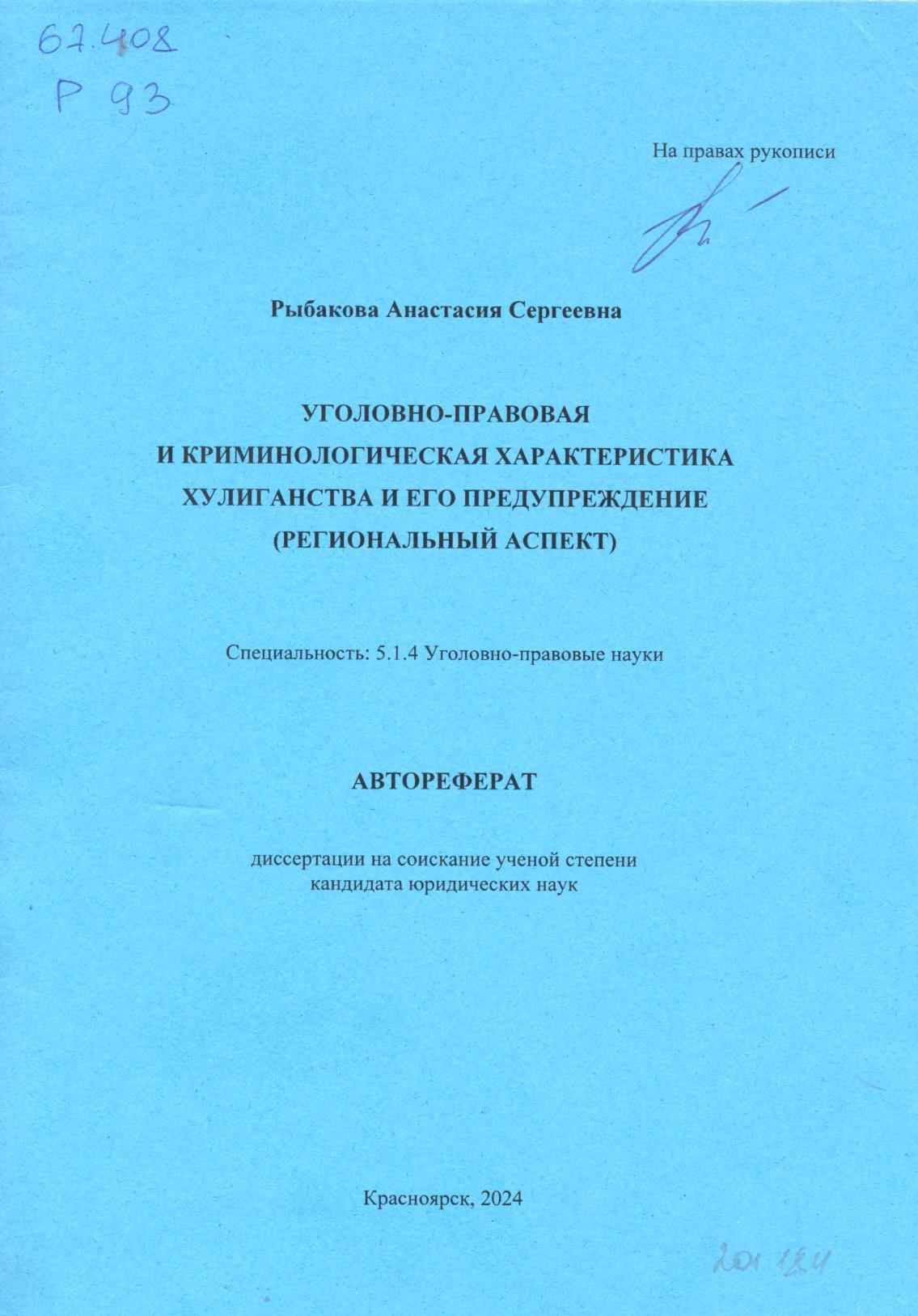 Криминологическая характеристика лиц, совершивших хулиганство. Выпуск 6