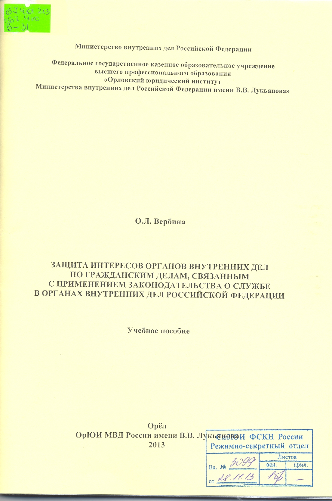 Орловский юридический институт МВД России (ОрЮИ МВД России), 2013 г.