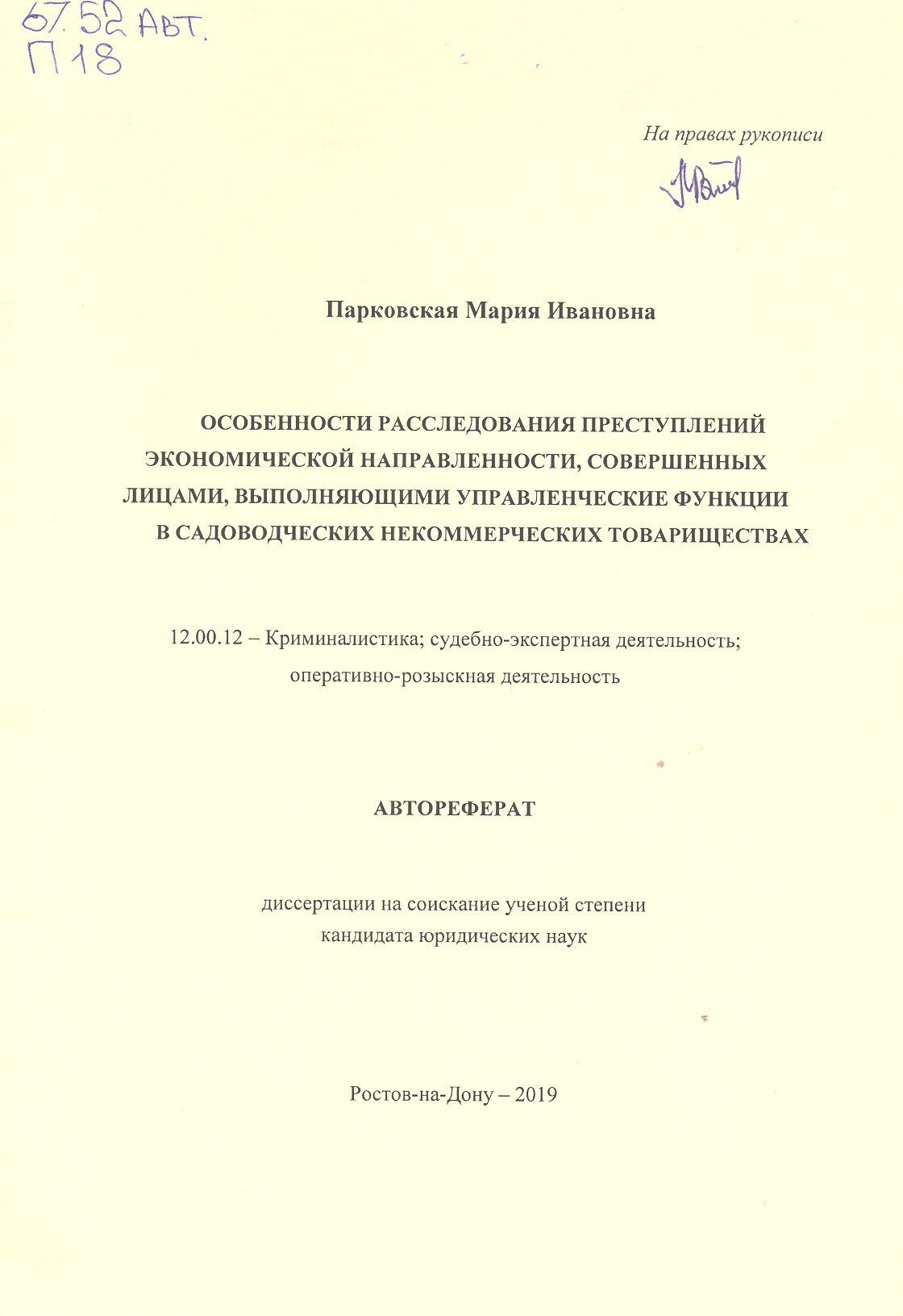 Особенности расследования преступлений экономической направленности, совершенных лицами, выполняю...: автореферат : 12.00.12