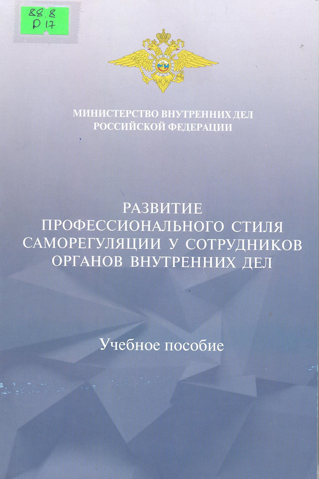 Развитие профессионального стиля саморегуляции у сотрудников органов внутренних дел: учебное пособие