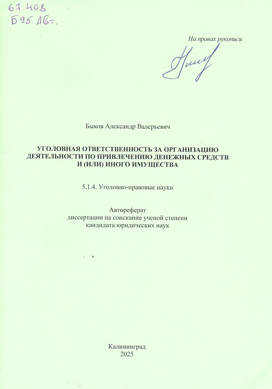 Уголовная ответственность за мошенничество: автореферат : 12.00.08