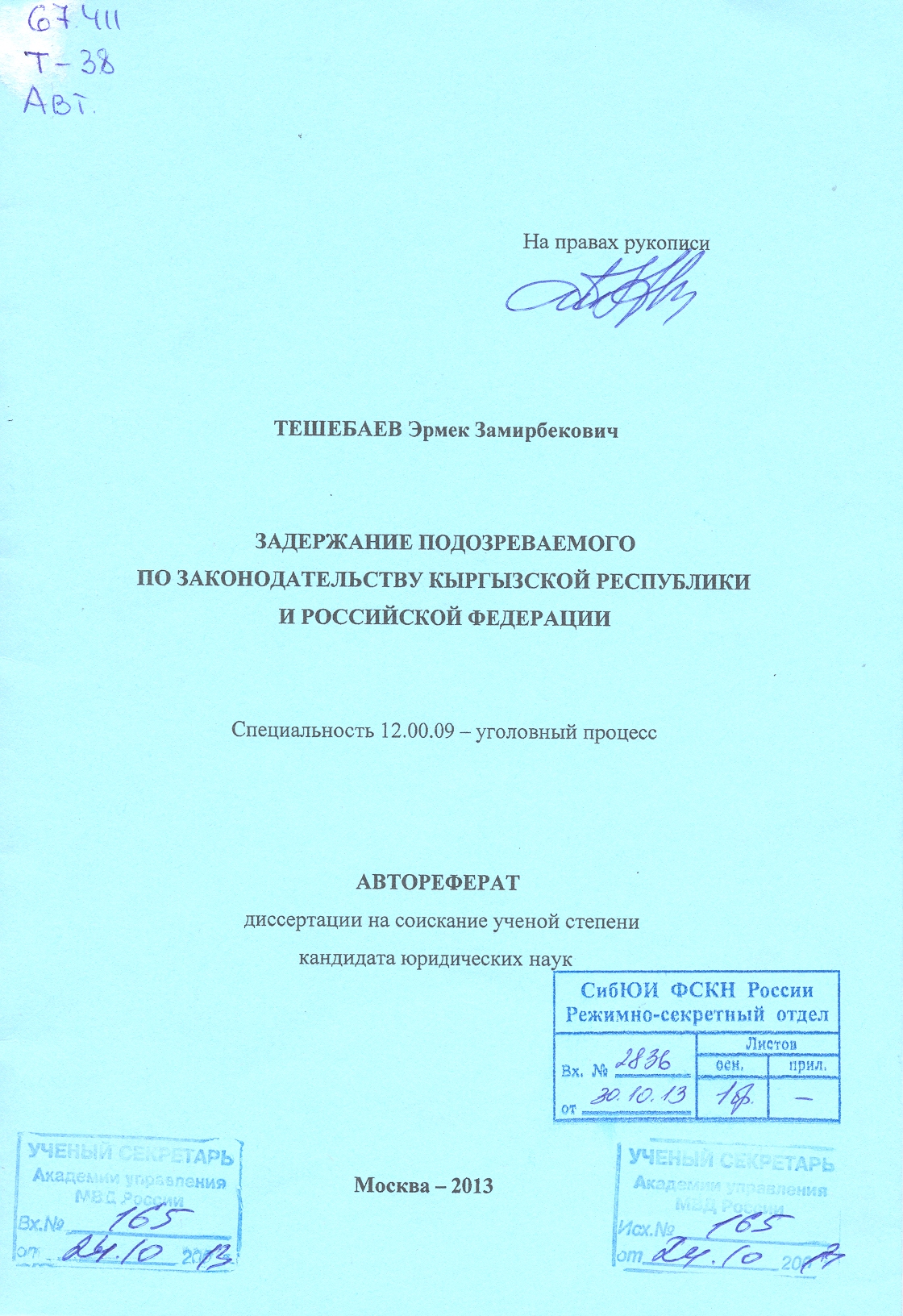 Задержание подозреваемого по законодательству Кыргызской Республики и Российской Федерации: автореферат: 12.00.09