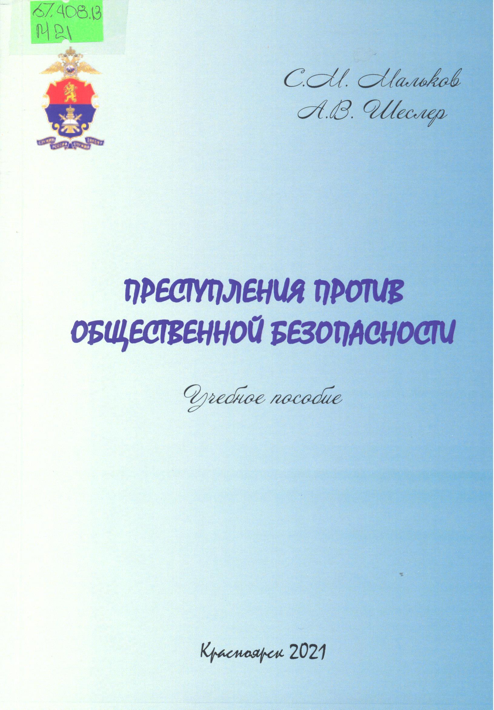 Преступления против общественной безопасности и общественного порядка: учебное пособие
