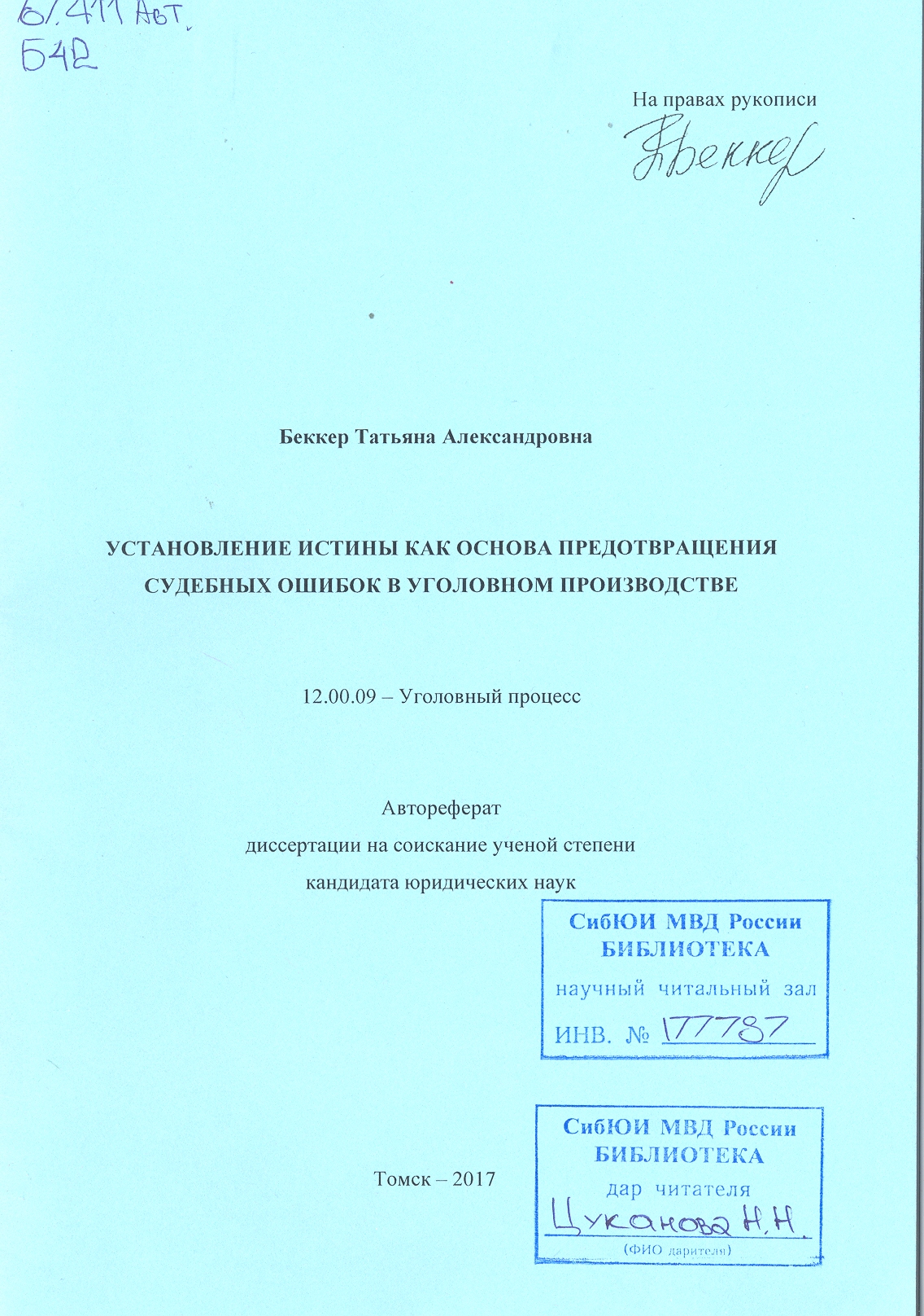 Установление истины как основа предотвращения судебных ошибок в уголовном судопроизводстве: автореферат : 12.00.09