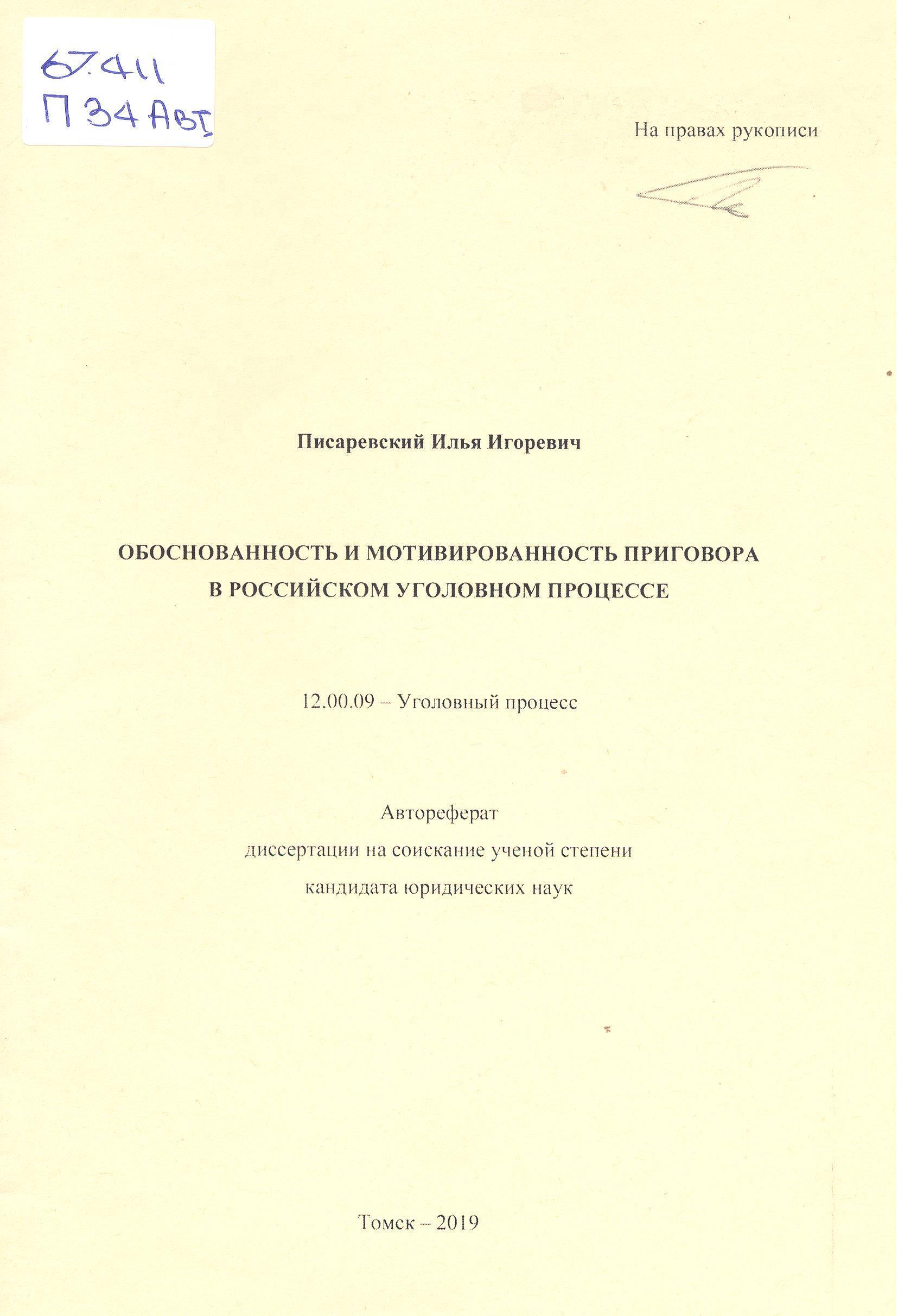 Обоснованность и мотивированность приговора в российском уголовном процессе: автореферат : 12.00.09