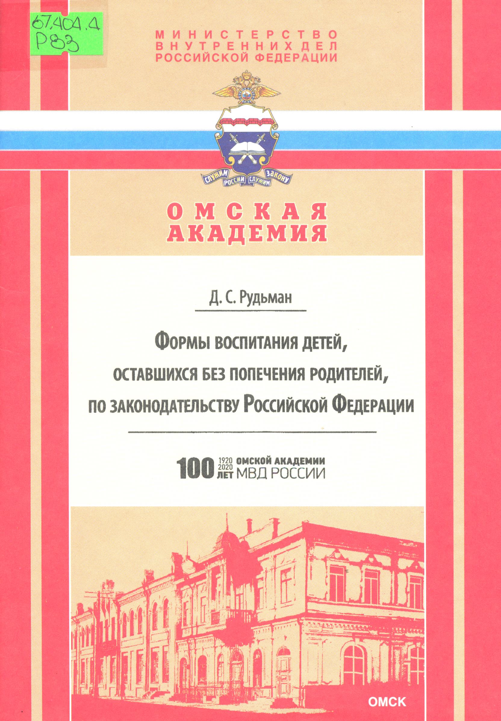 Формы воспитания детей, оставшихся без попечения родителей, по законодательству Российской Федерации: учебное пособие