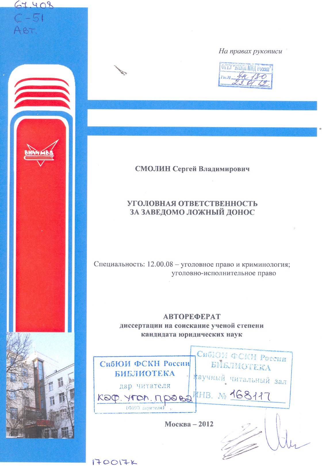 Уголовная ответственность за заведомо ложный донос: автореферат: 12.00.08