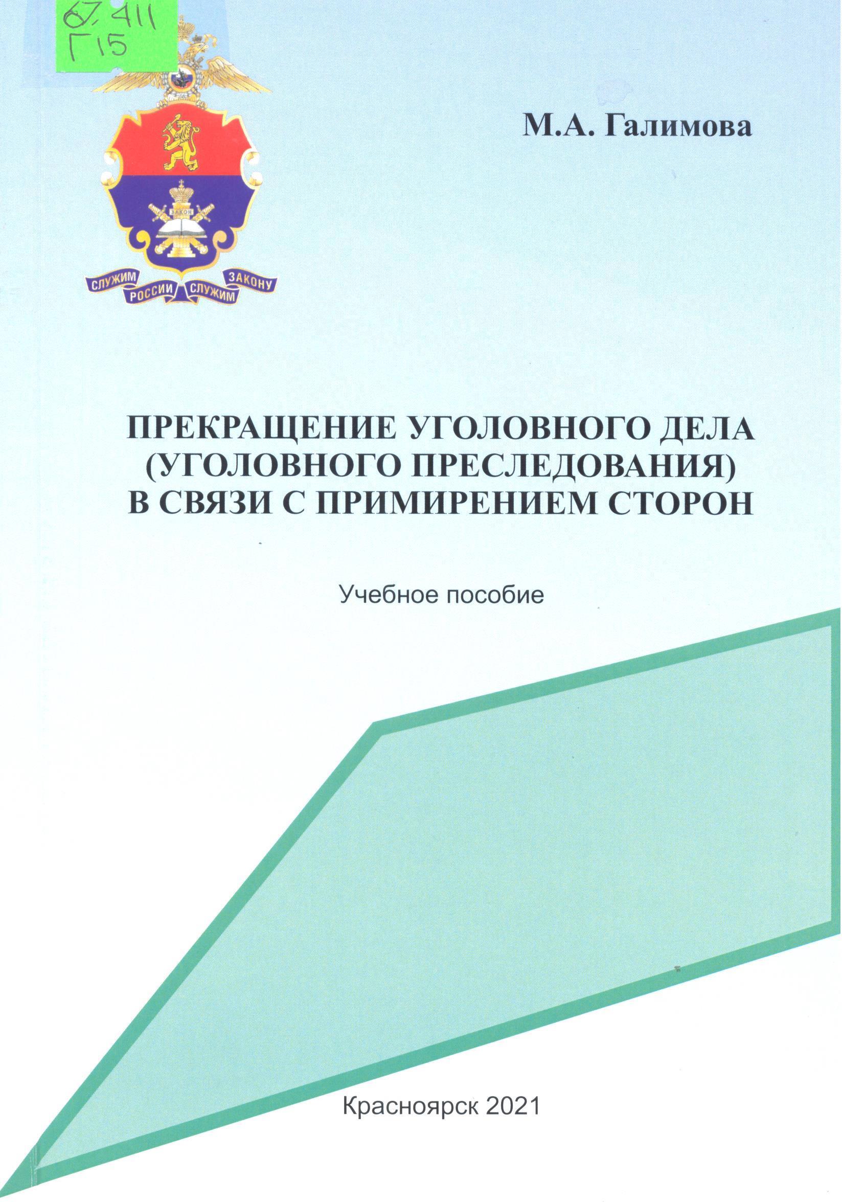 Прекращение уголовного дела (уголовного преследования) в связи с примирением сторон: учебное пособие