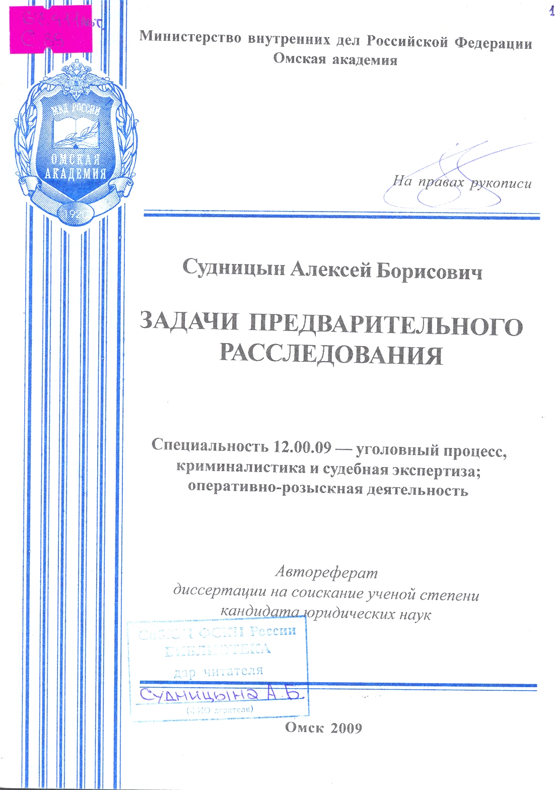 Задачи предварительного расследования: автореферат : 12.00.09