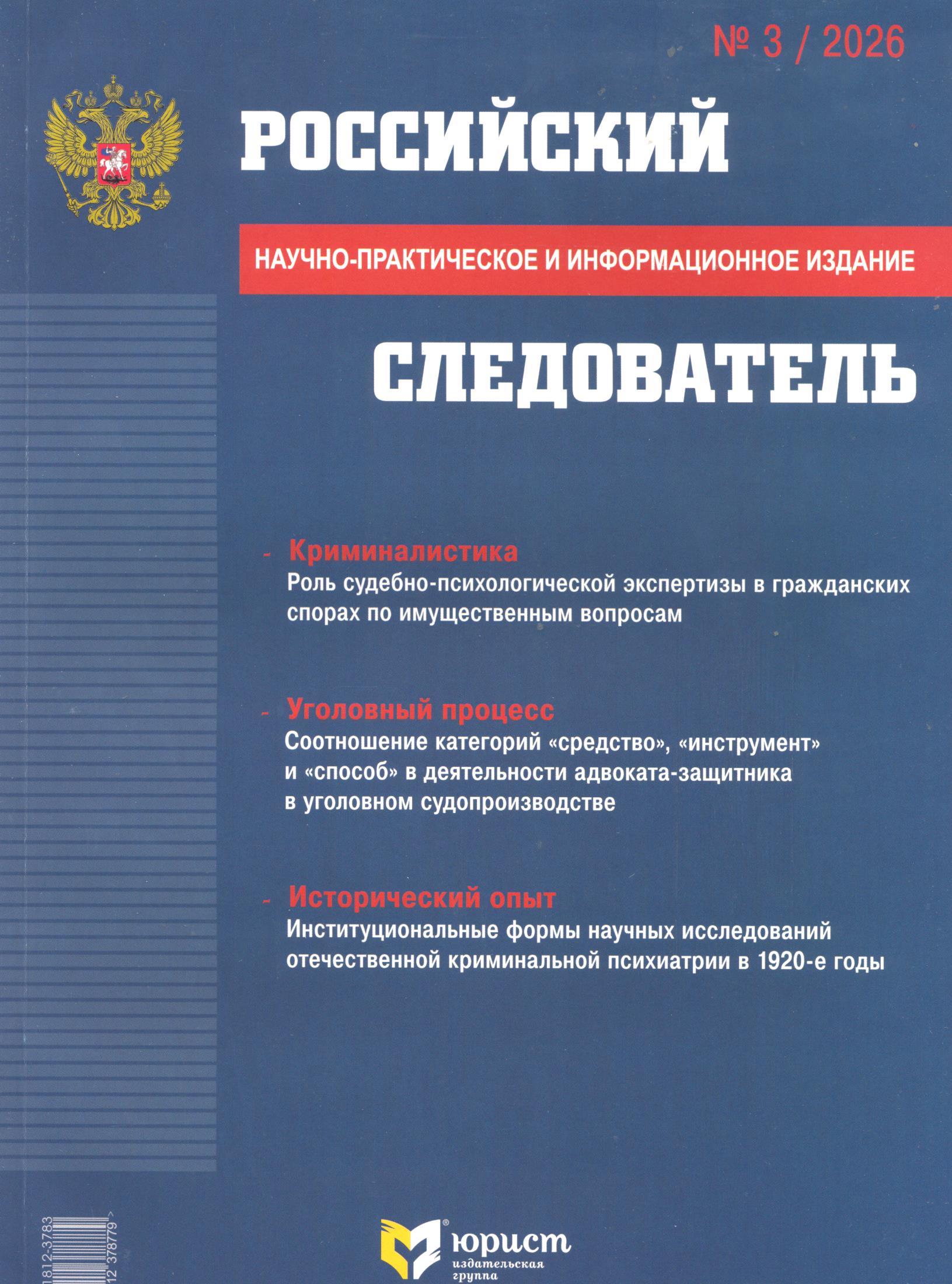 Российский следователь : научно-практическое и информационное издание. – Москва : Издательская группа "Юрист". – : мягкий. – ISSN 1812-3783.