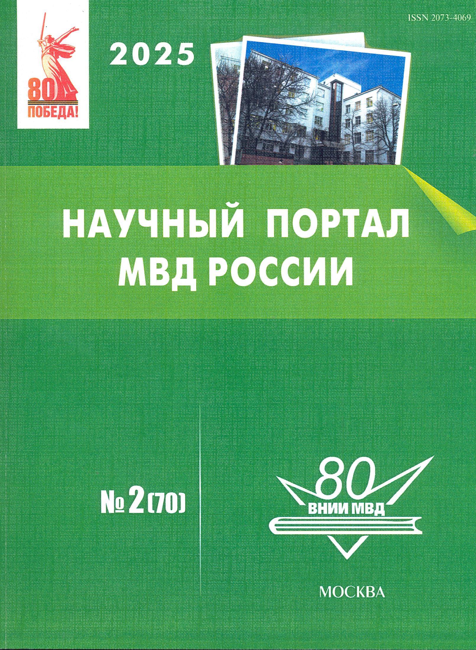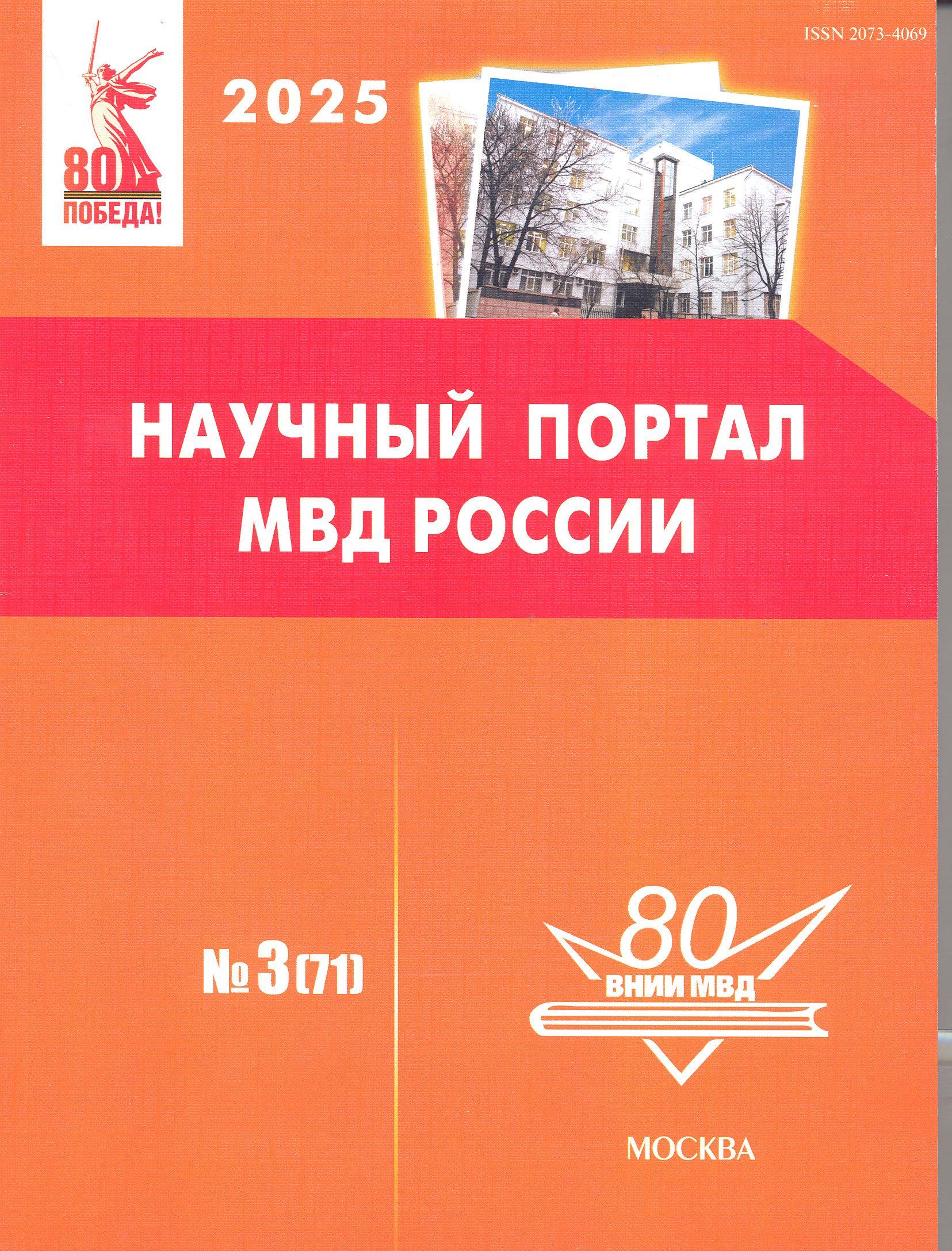 Научный портал МВД России : журнал. – ежеквартально. – Москва : Всероссийский научно-исследовательский институт МВД РФ (ВНИИ МВД России).