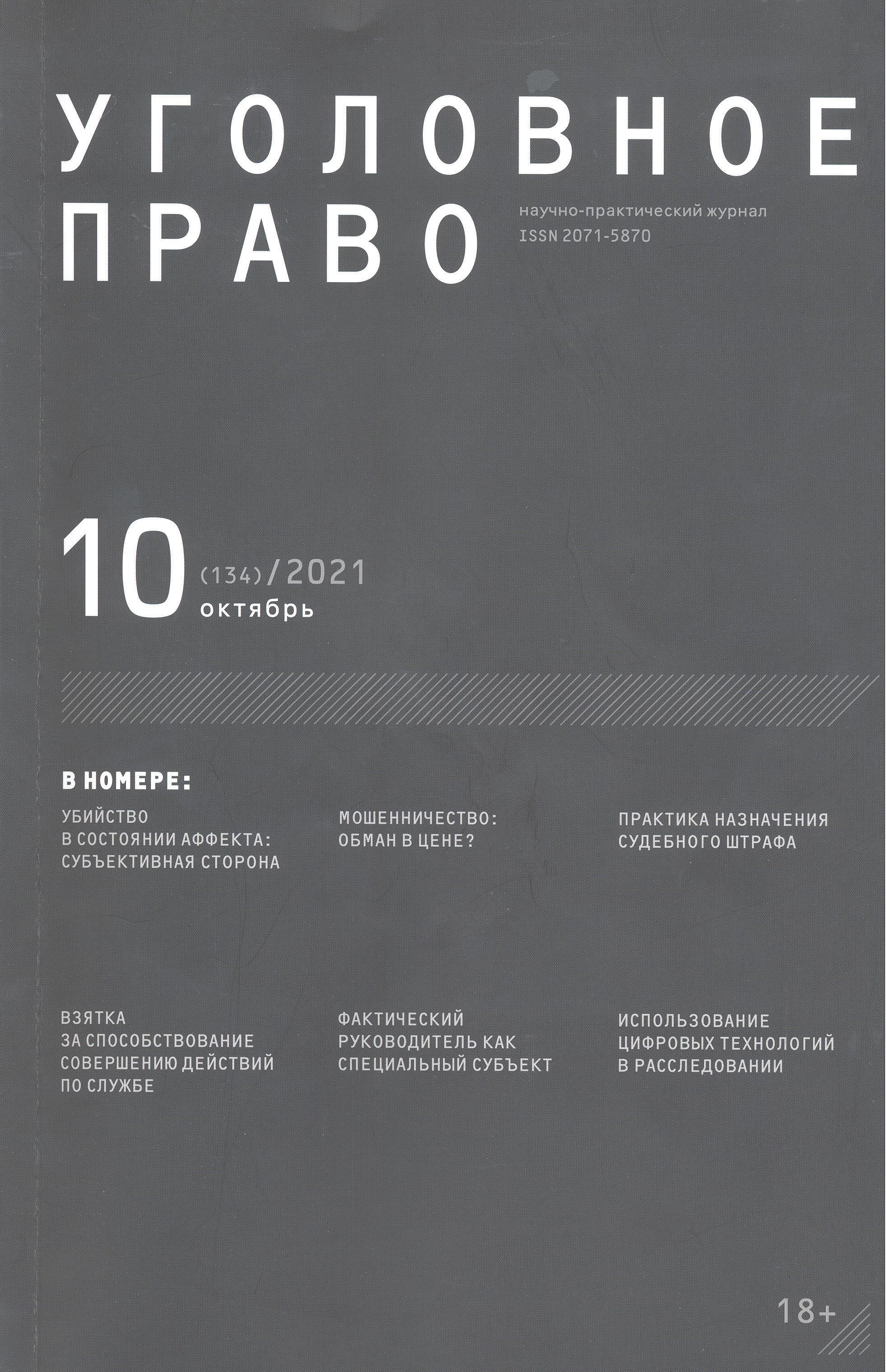 Лицо, имеющее фактическую возможность определять действия организации, как специальный субъект преступления / Илья Александрович Белецкий. – 2021 // Уголовное право. – 2021. – N10. – С.14-20.
