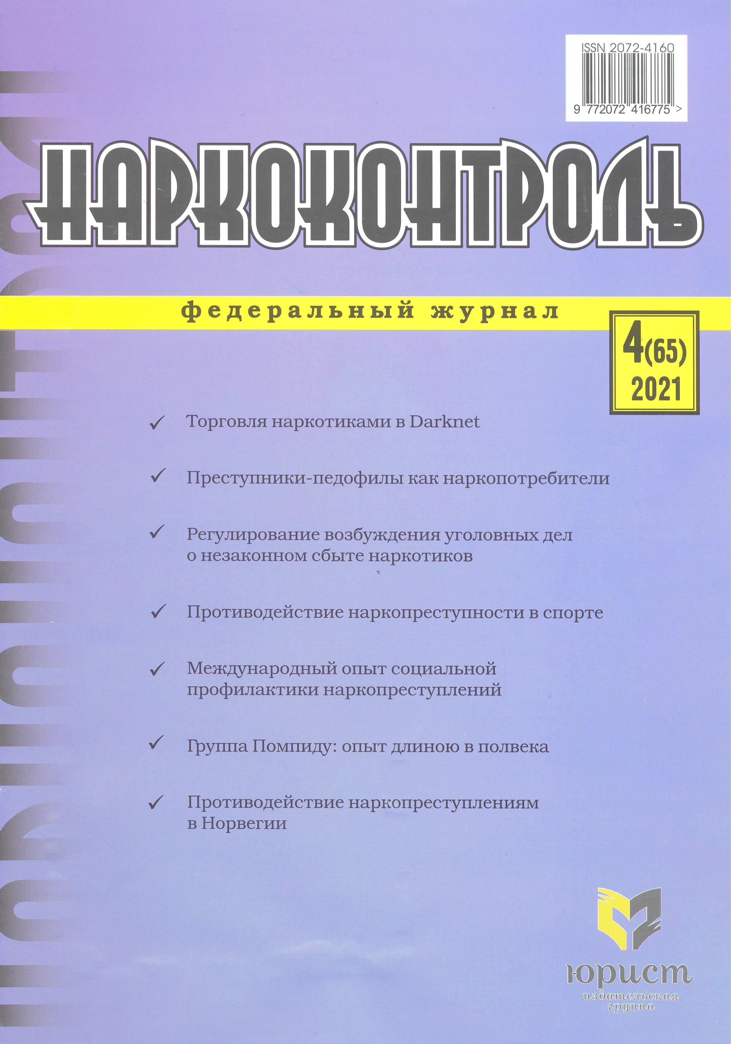 Преступники-педофилы как наркопотребители и участники незаконного оборота наркотиков / Иван Львович Третьяков. – 2021 // Наркоконтроль. – 2021. – N4. – С.15-19. – Режим доступа : http://lib.sibli.ru/elib/Третьяков 15-19.pdf.