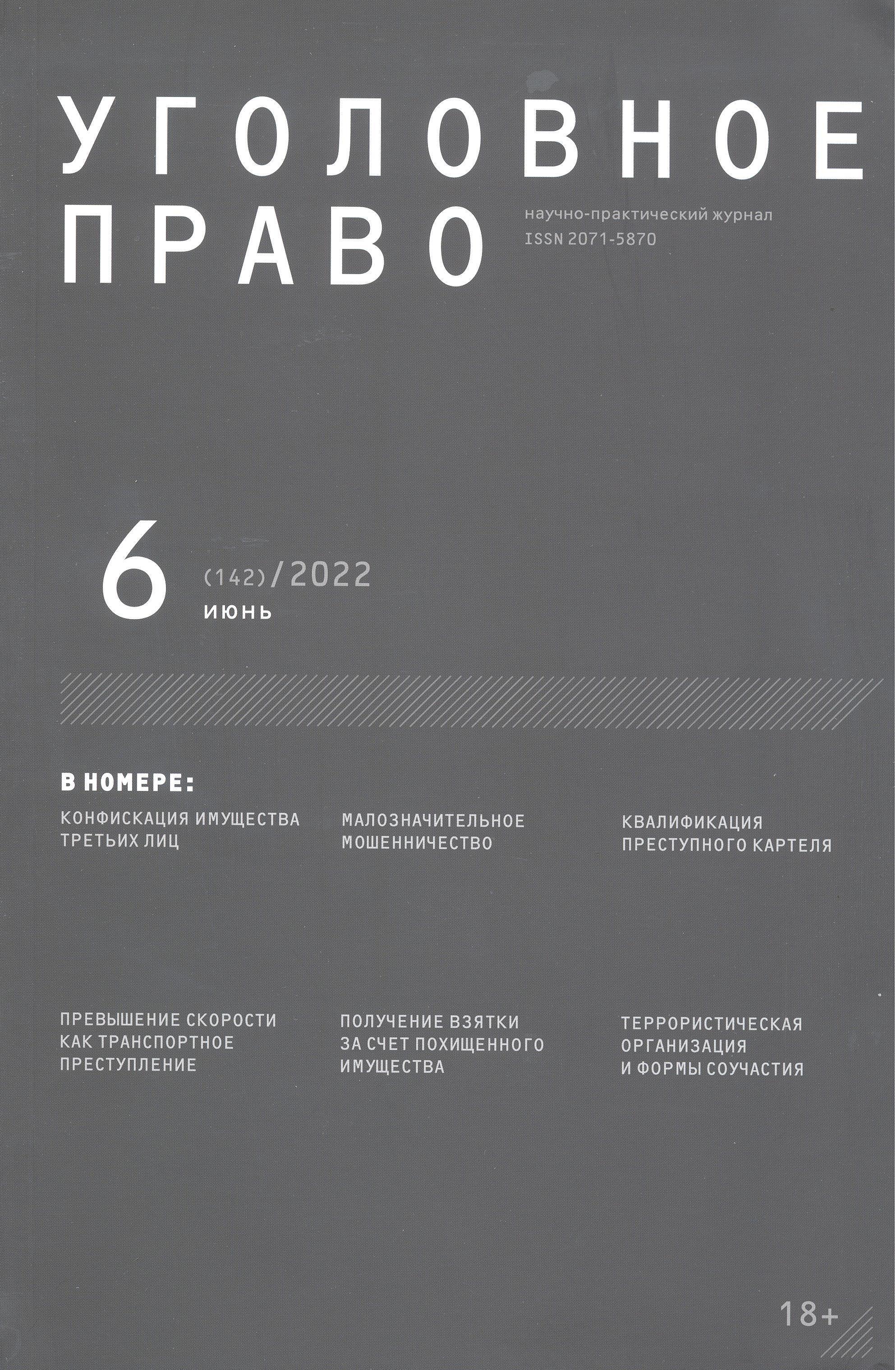 Террористическая организация и формы соучастия в преступлении: вопросы квалификации / Павел Валерьевич Агапов, Артем Геннадьевич Хлебушкин. – 2022 // Уголовное право. – 2022. – N6. – С.3-8.