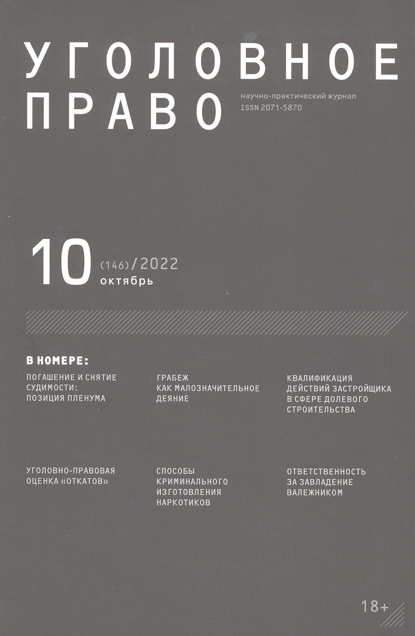 Способы криминального изготовления наркотиков / Денис Валерьевич Токманцев. – 2022 // Уголовное право. – 2022. – N10. – С.35-40.