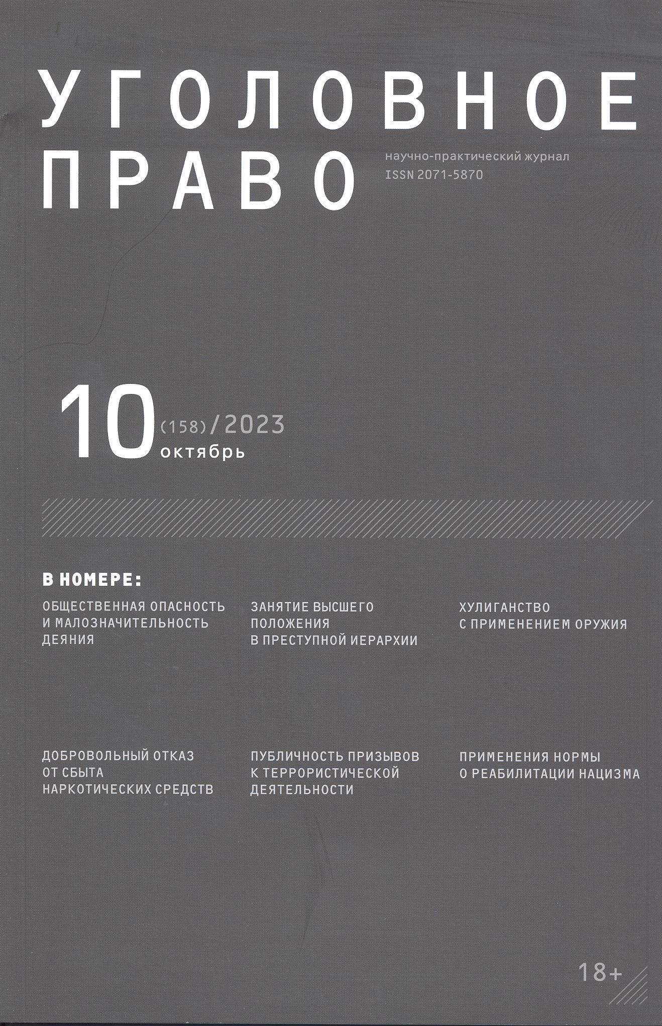 Общественная опасность и малозначительность деяния / Виктор Николаевич Винокуров. – 2023 // Уголовное право. – 2023. – N10. – С.3-11.